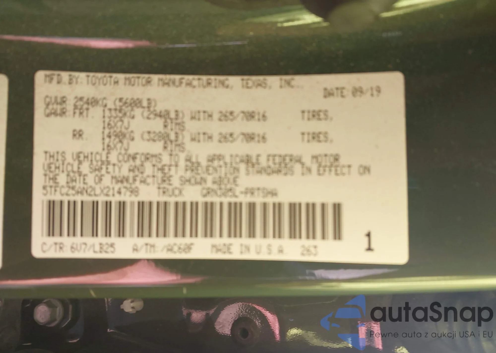 VIN: 5TFCZ5AN2LX214798