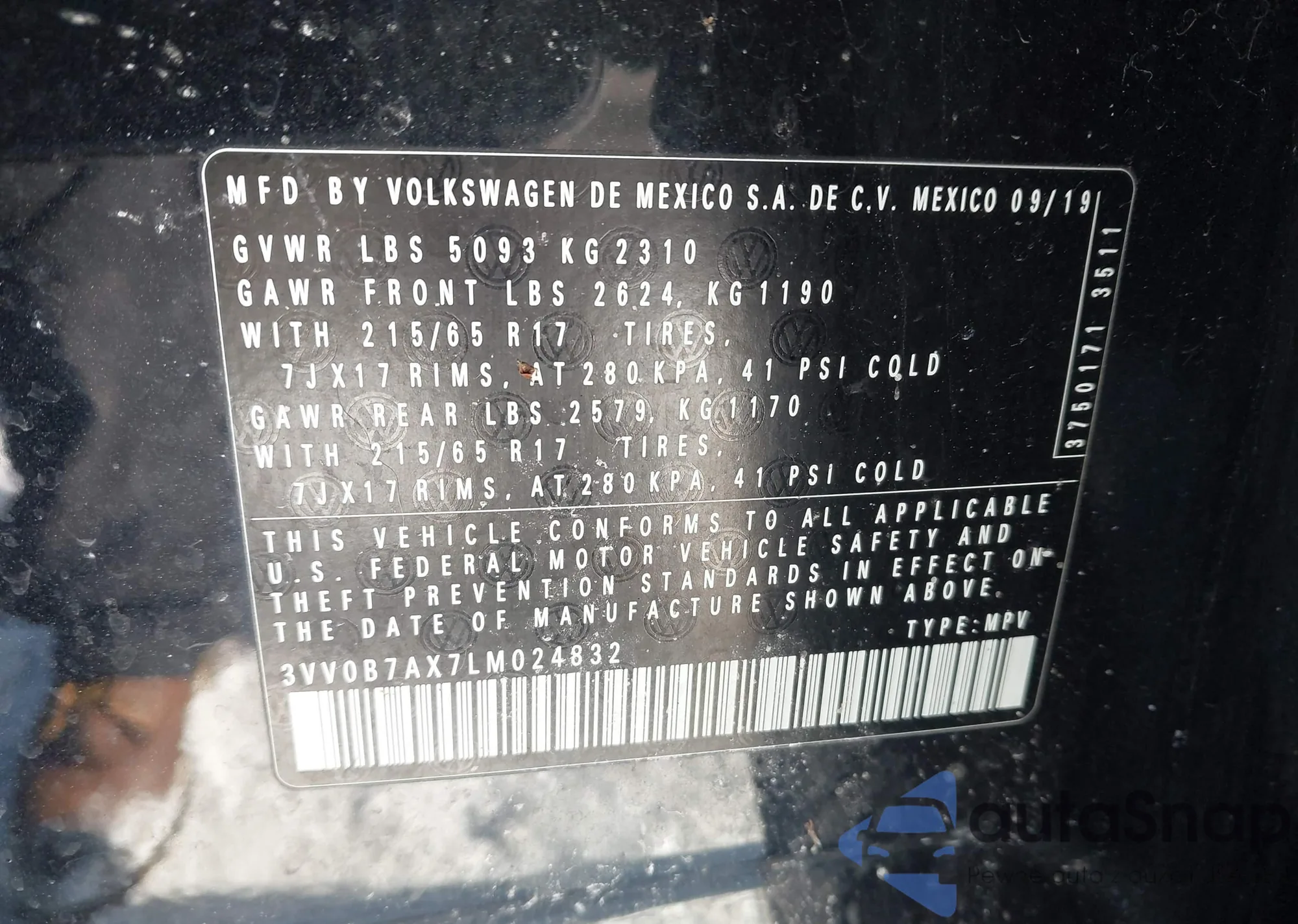 Автомобиль Volkswagen Tiguan 2020 (VIN 3VV0B7AX7LM024832) ранее не участвовал в торгах. Документы чистые, пробег соответствует или ниже среднего по рынку. Продаётся страховой компанией — рекомендуем покупку. Доставка в порт займет около 6–8 недель.