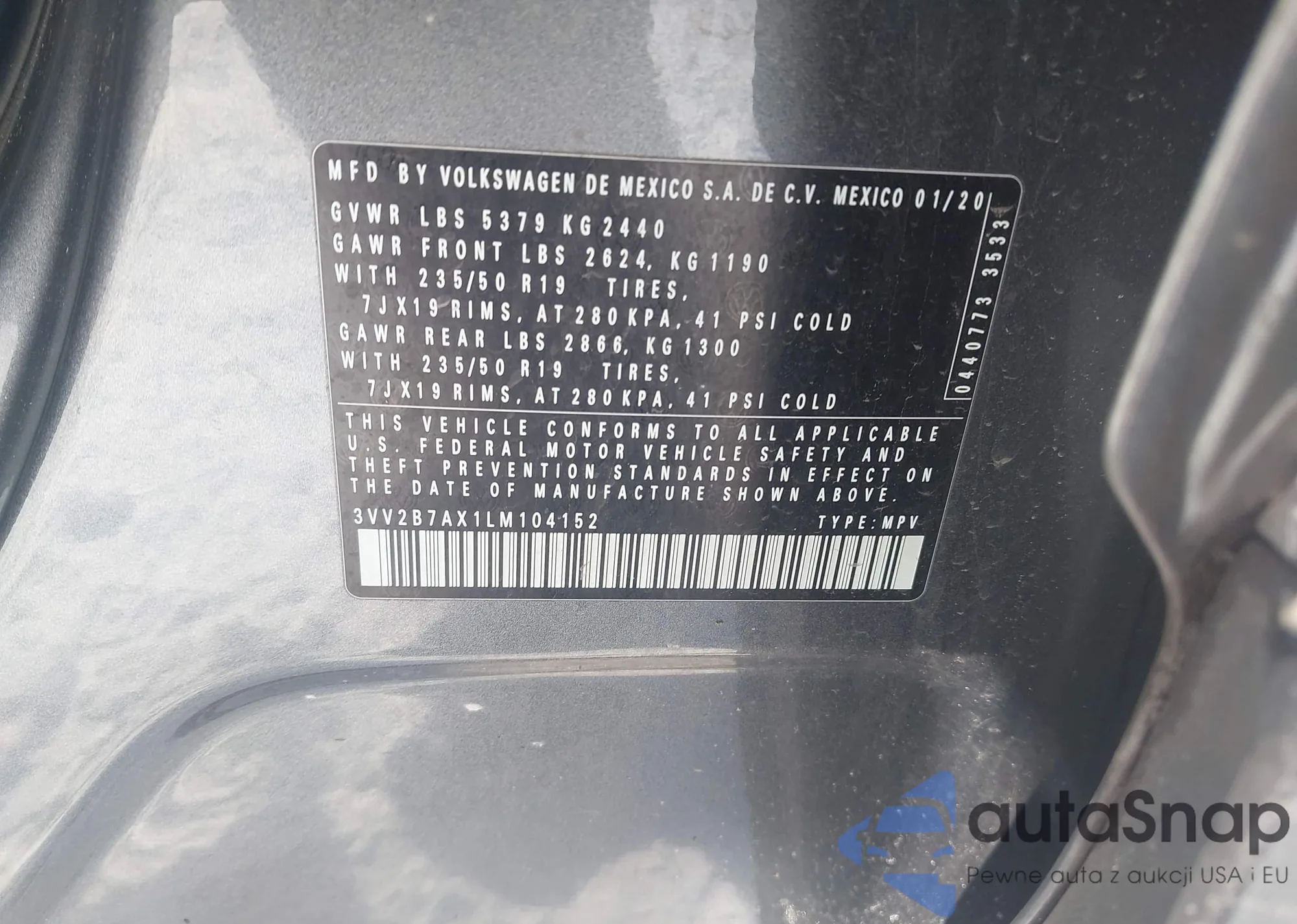• VIN: 3VV2B7AX1LM104152