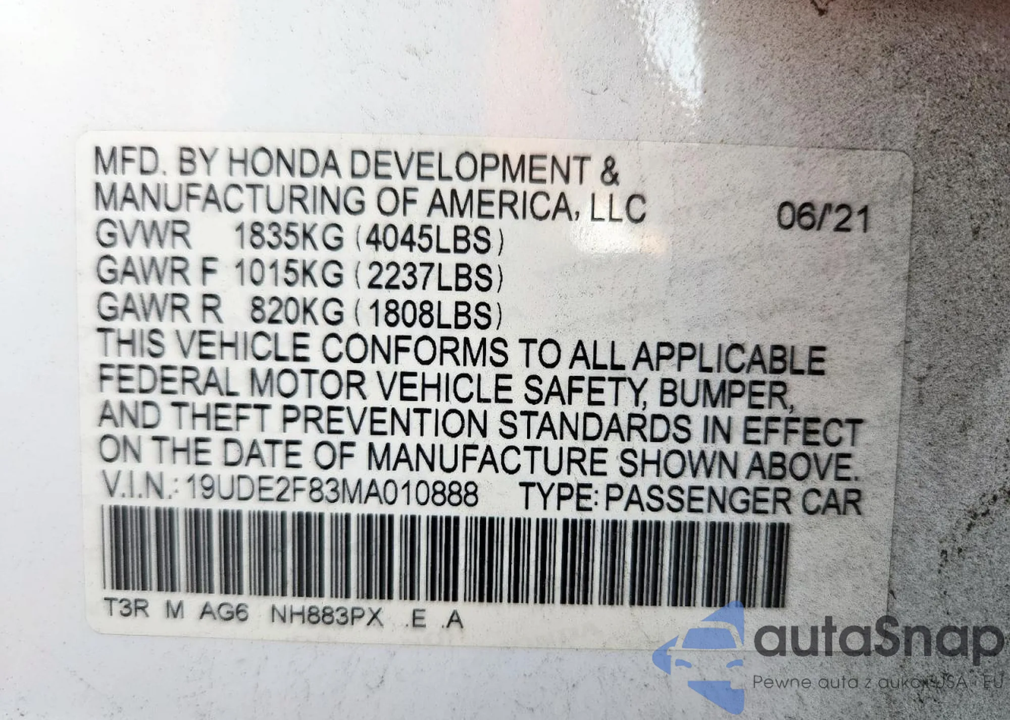 VIN: 19UDE2F83MA010888