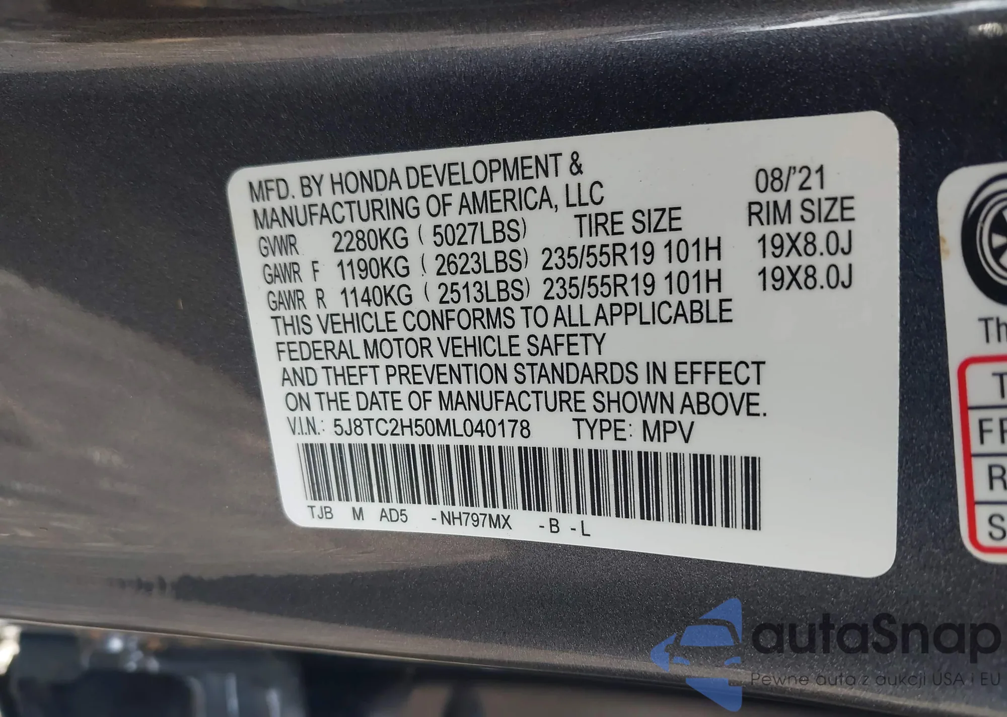 VIN: 5J8TC2H50ML040178