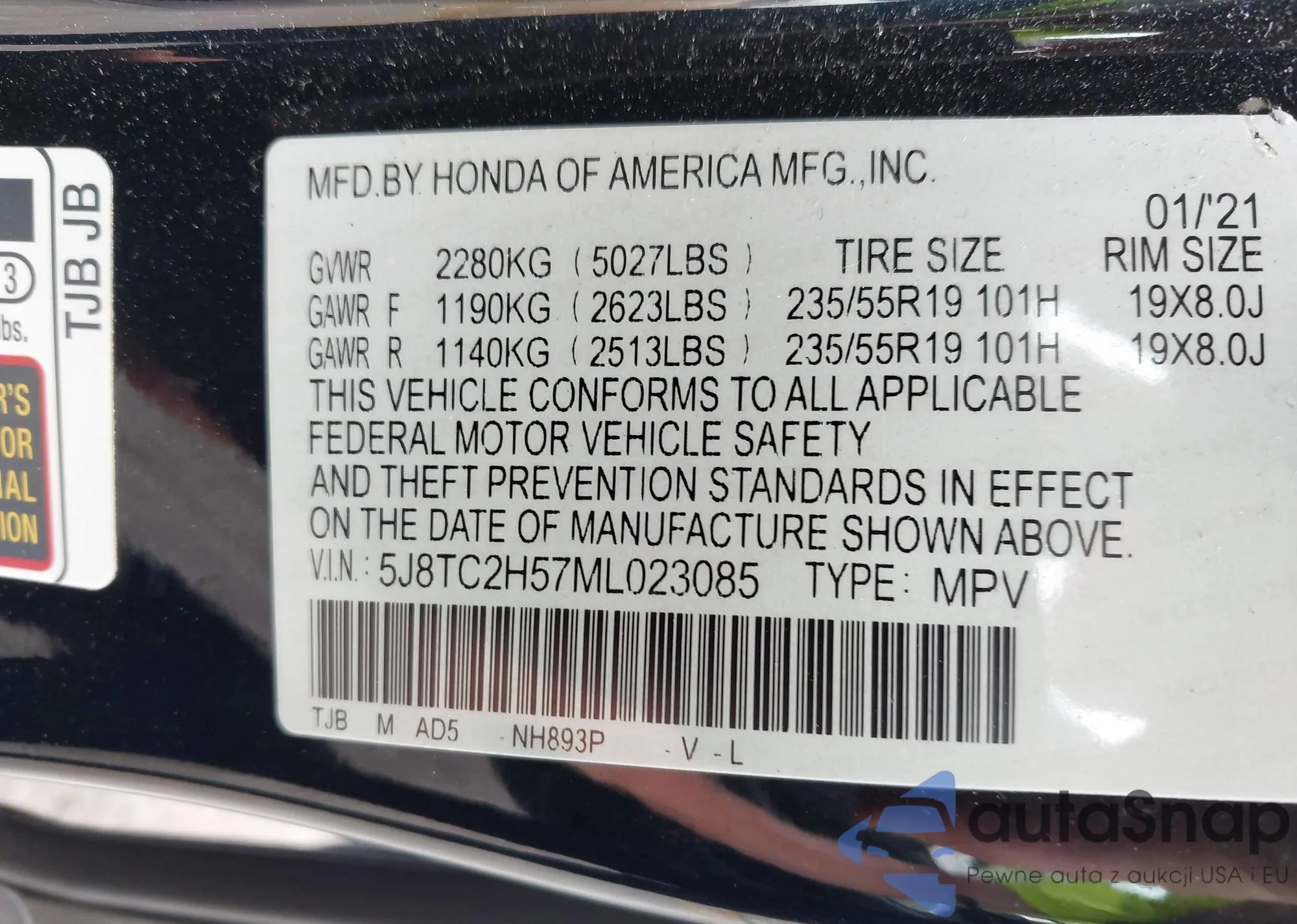 VIN: 5J8TC2H57ML023085