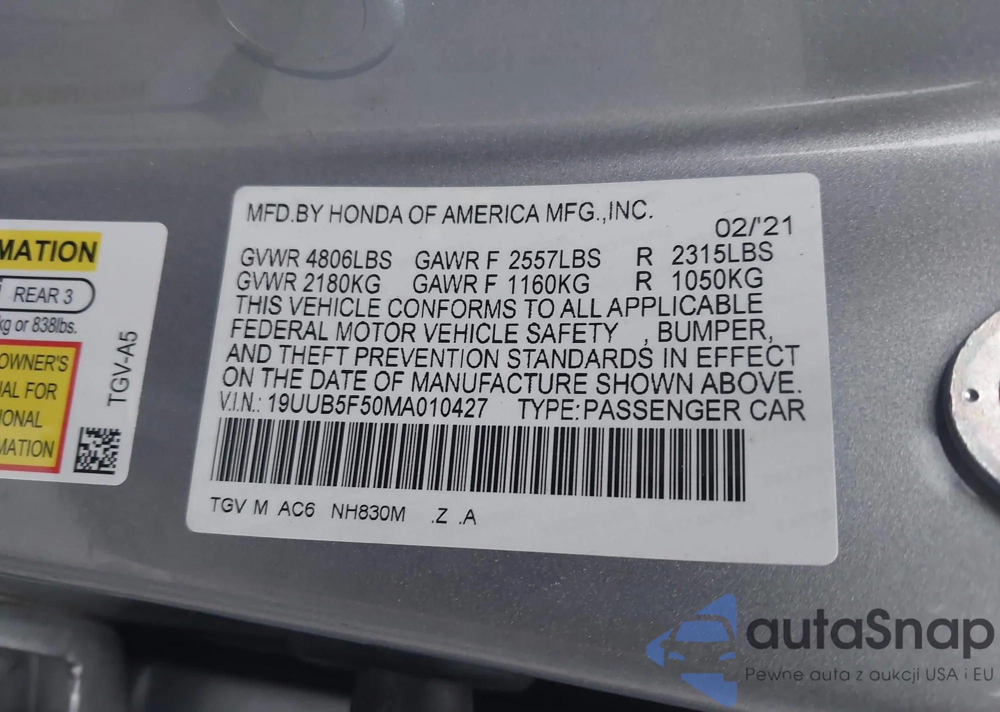 VIN: 19UUB5F50MA010427