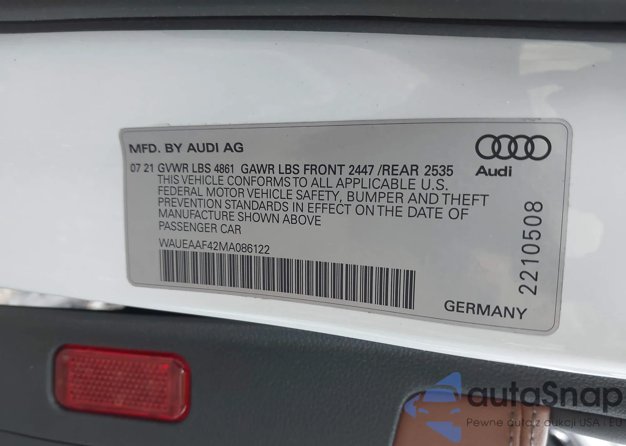 VIN: WAUEAAF42MA086122