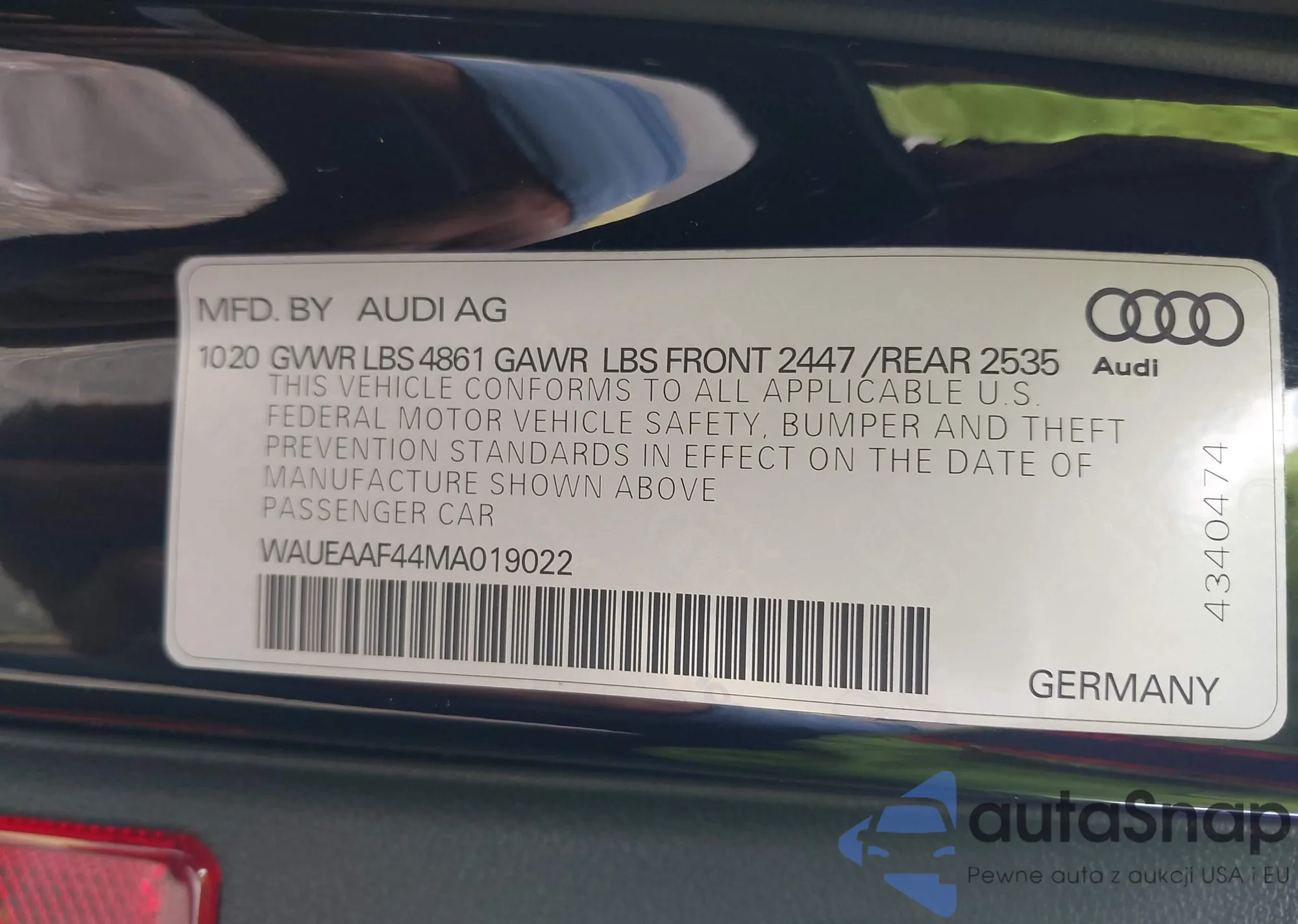 VIN: WAUEAAF44MA019022