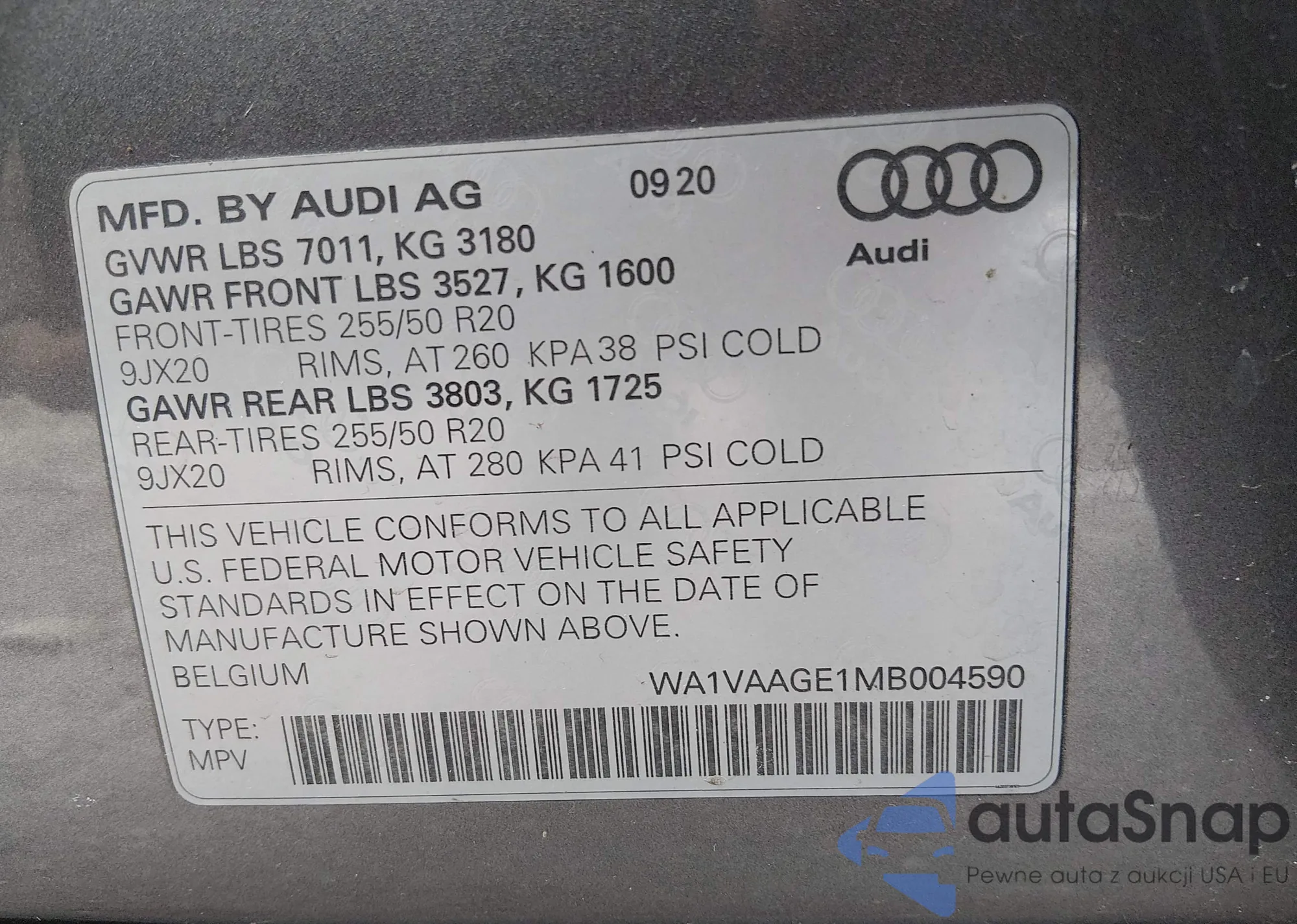 • VIN: WA1VAAGE1MB004590