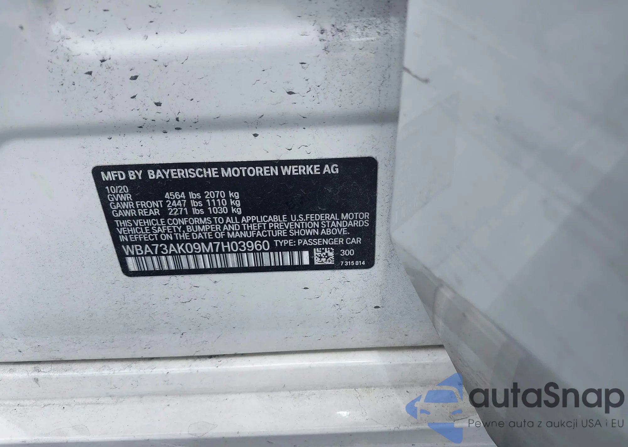 VIN: WBA73AK09M7H03960