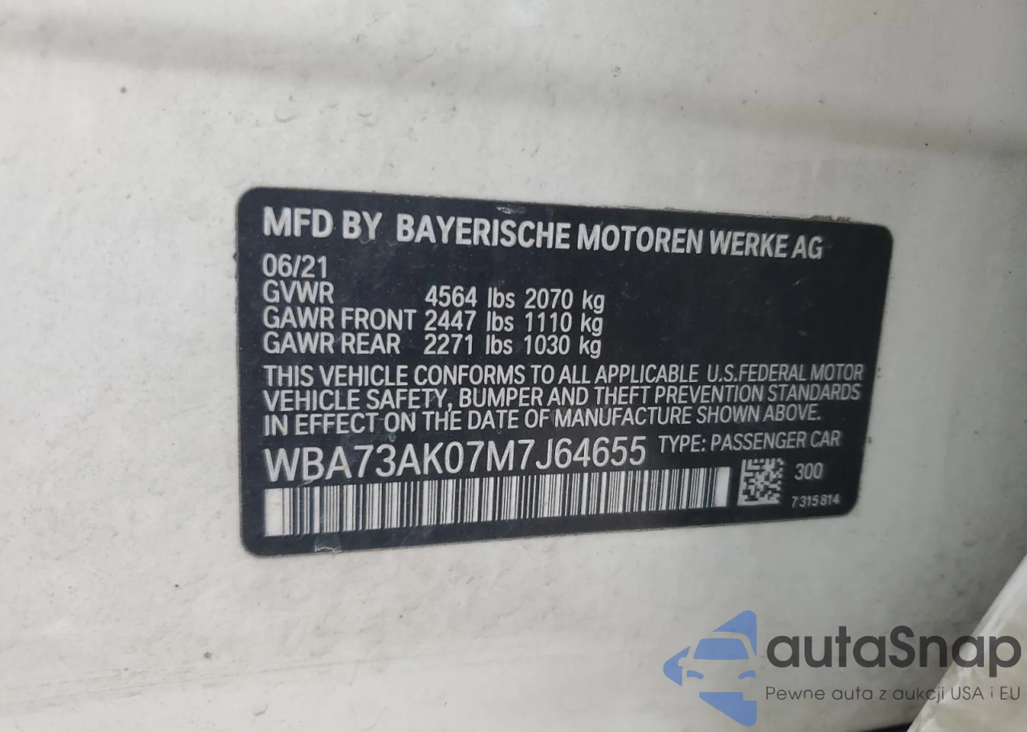 VIN: WBA73AK07M7J64655