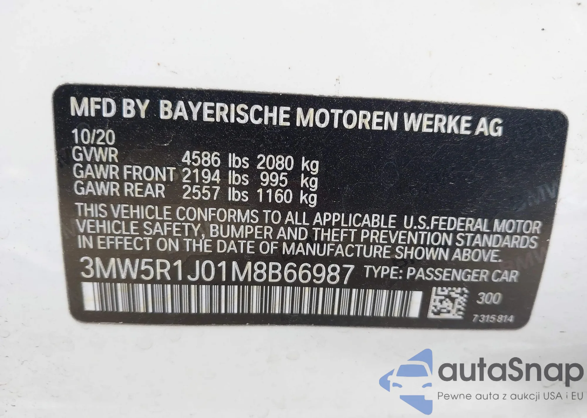 • VIN: 3MW5R1J01M8B66987