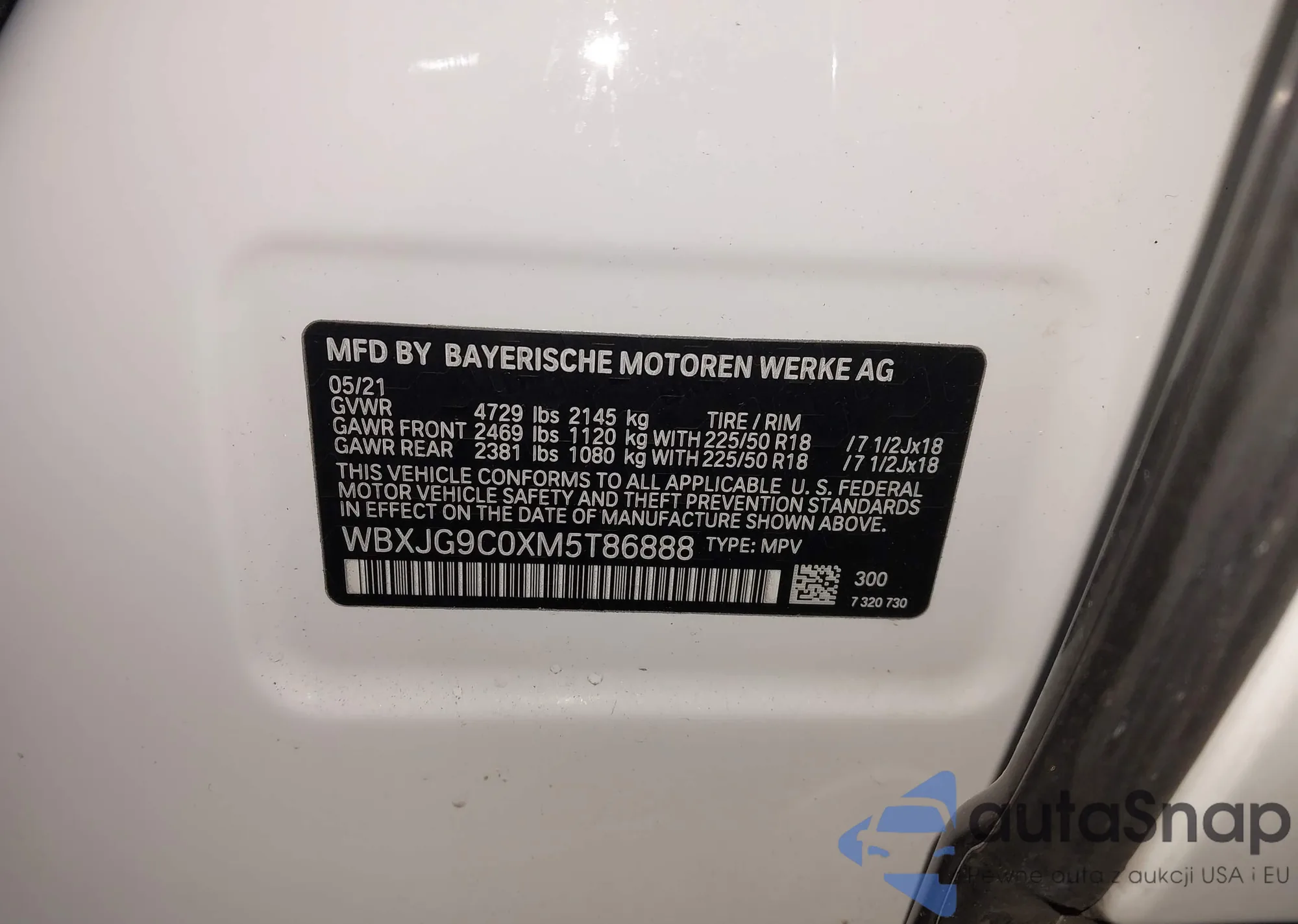• VIN: WBXJG9C0XM5T86888