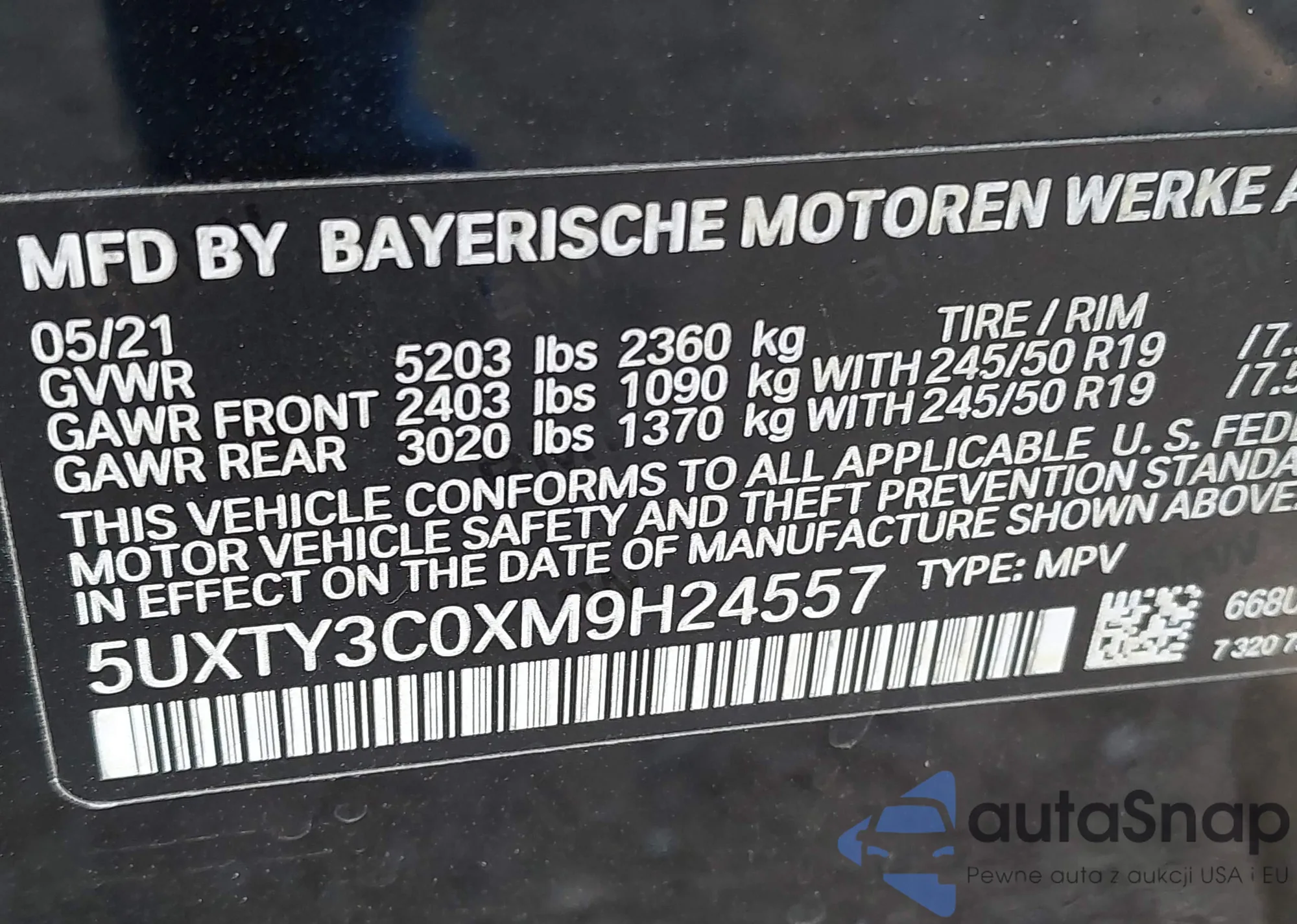 • VIN: 5UXTY3C0XM9H24557