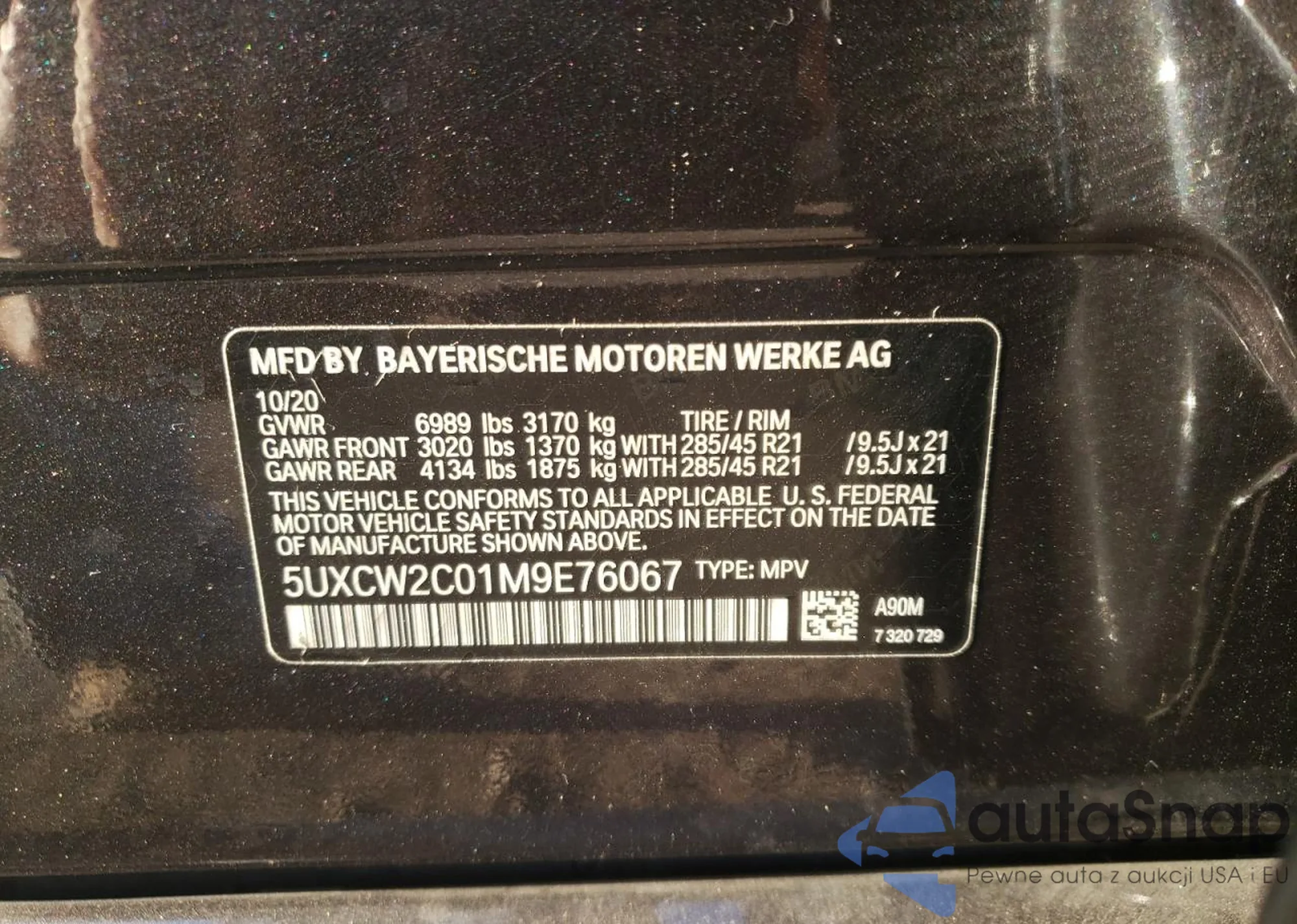 VIN: 5UXCW2C01M9E76067