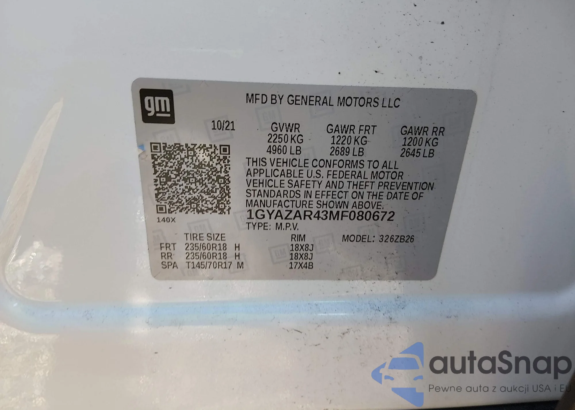1GYAZAR43MF080672 IAAI