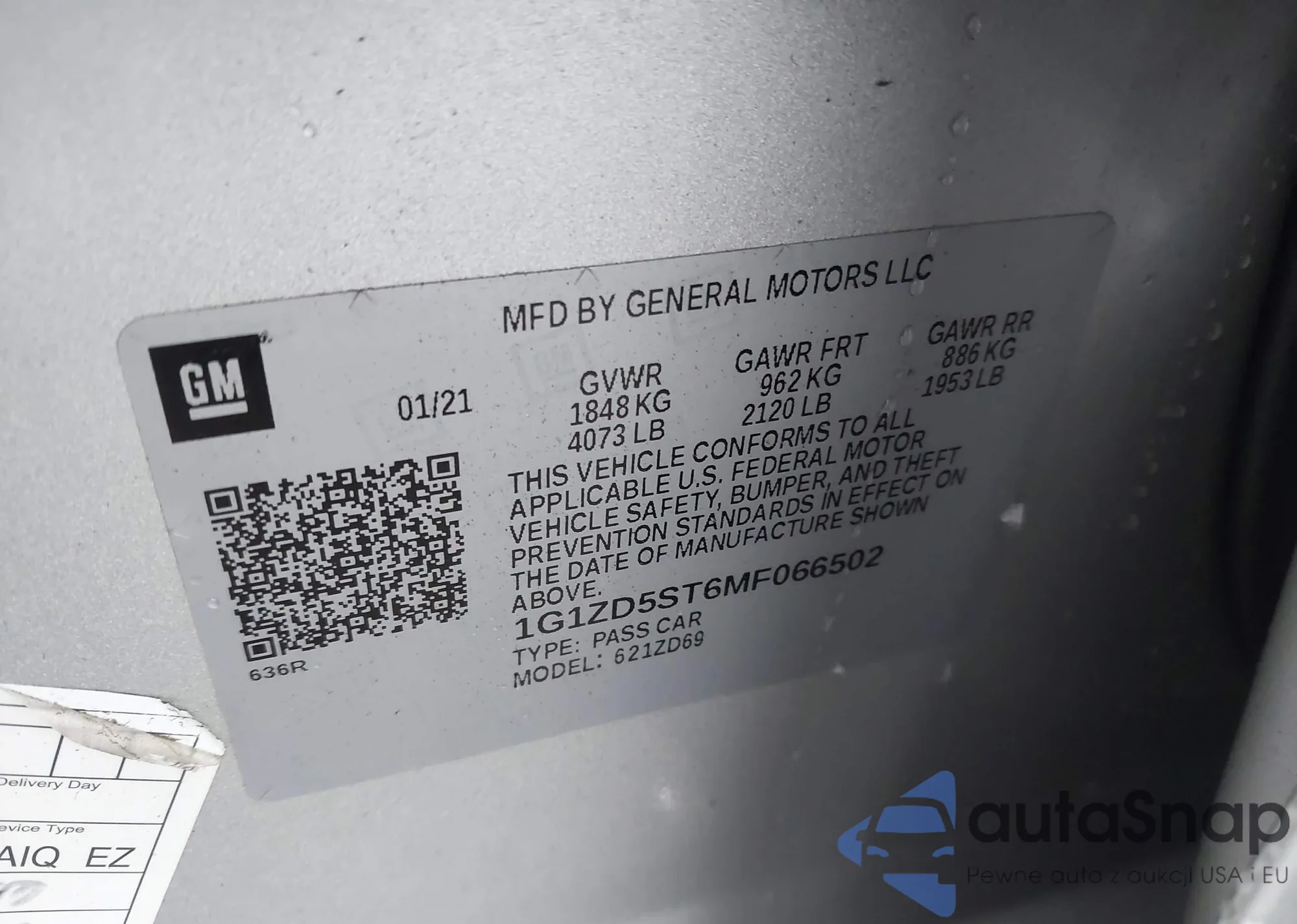 VIN: 1G1ZD5ST6MF066502