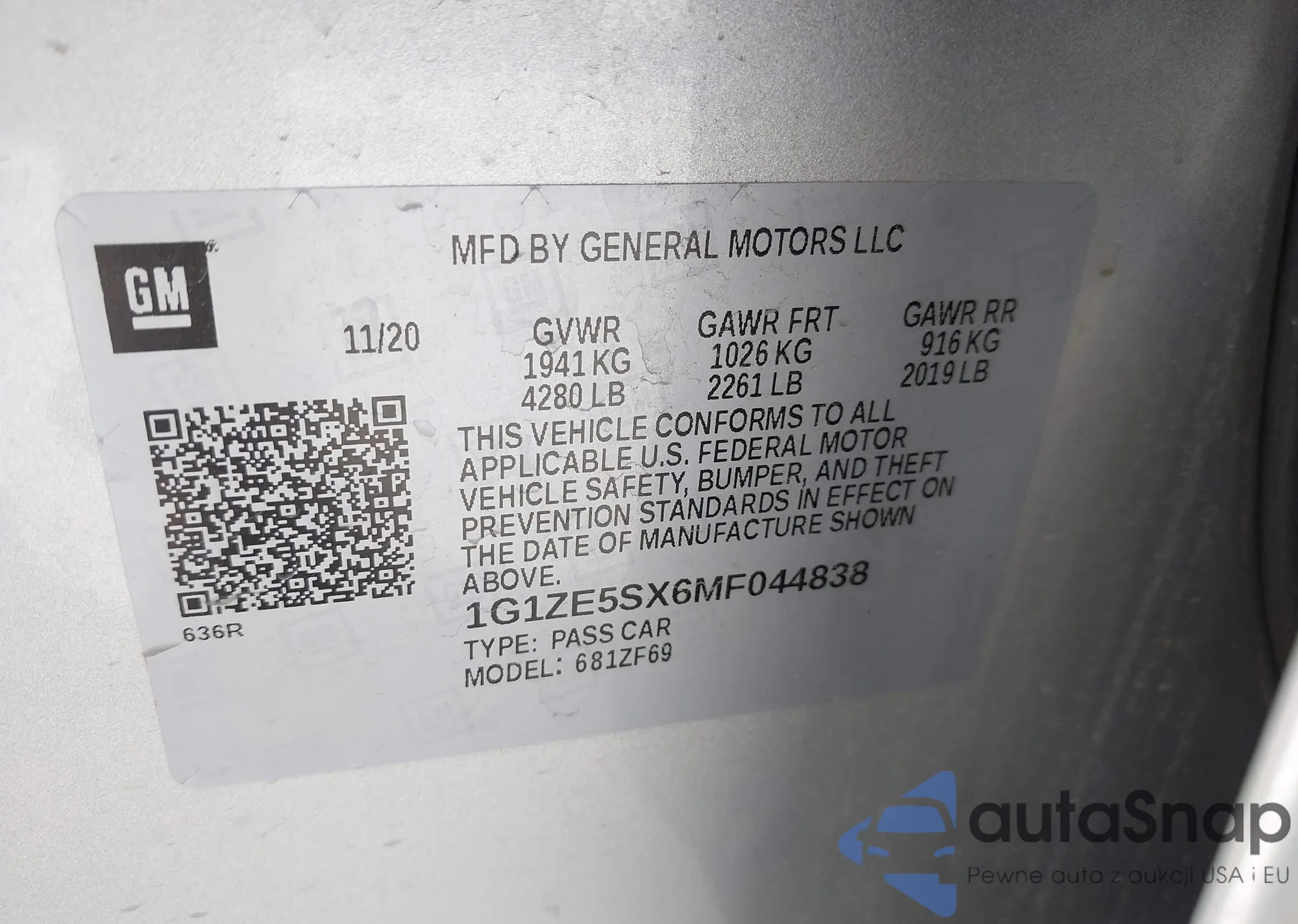 VIN: 1G1ZE5SX6MF044838