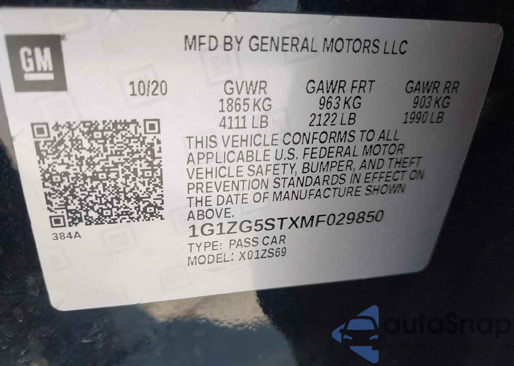 • VIN: 1G1ZG5STXMF029850