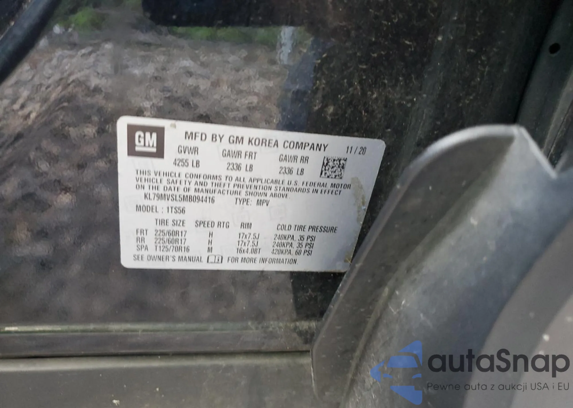 • VIN: KL79MVSL5MB094416