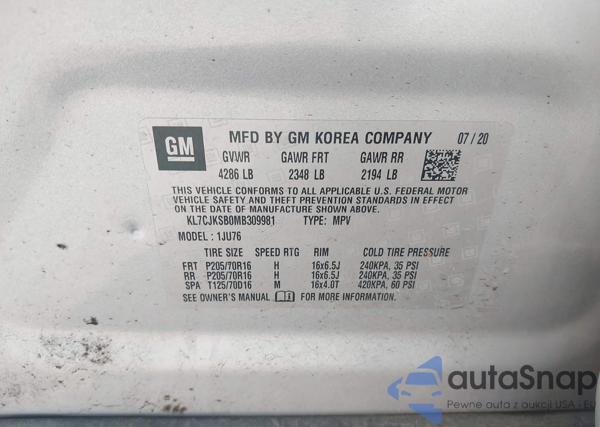 VIN: KL7CJKSB0MB309981