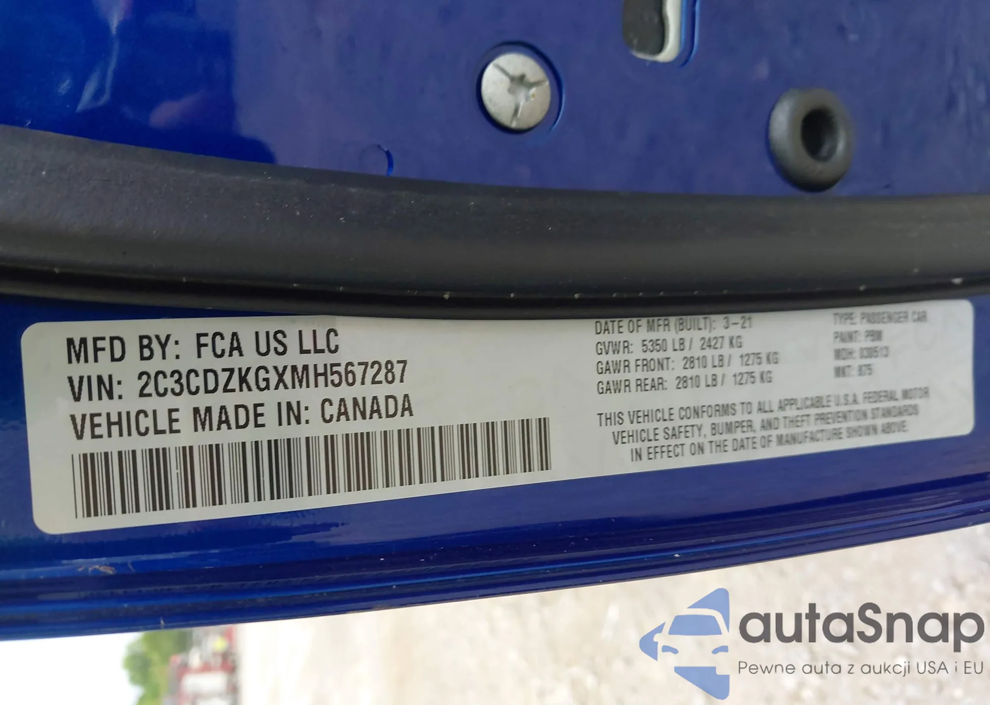 VIN: 2C3CDZKGXMH567287