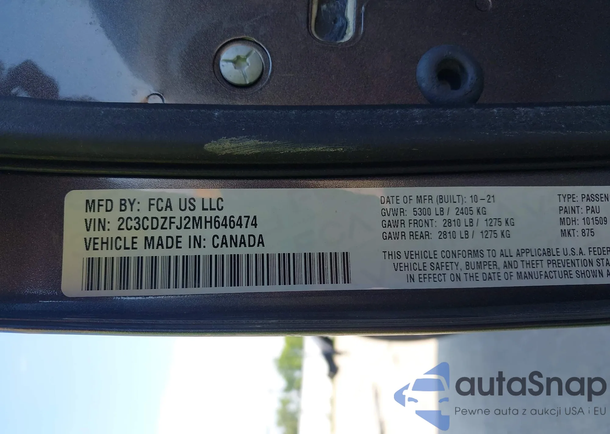 VIN: 2C3CDZFJ2MH646474