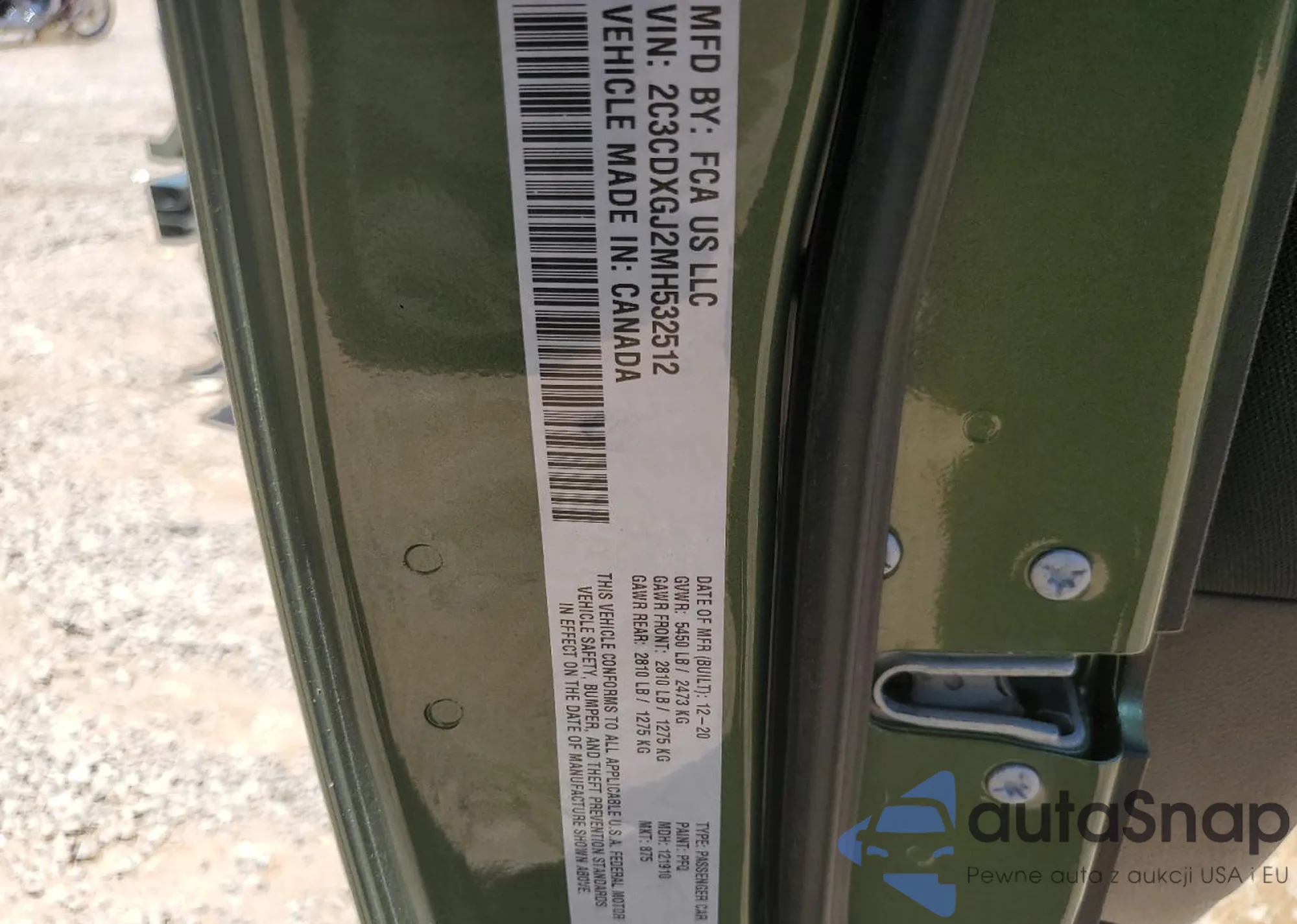 • VIN: 2C3CDXGJ2MH532512