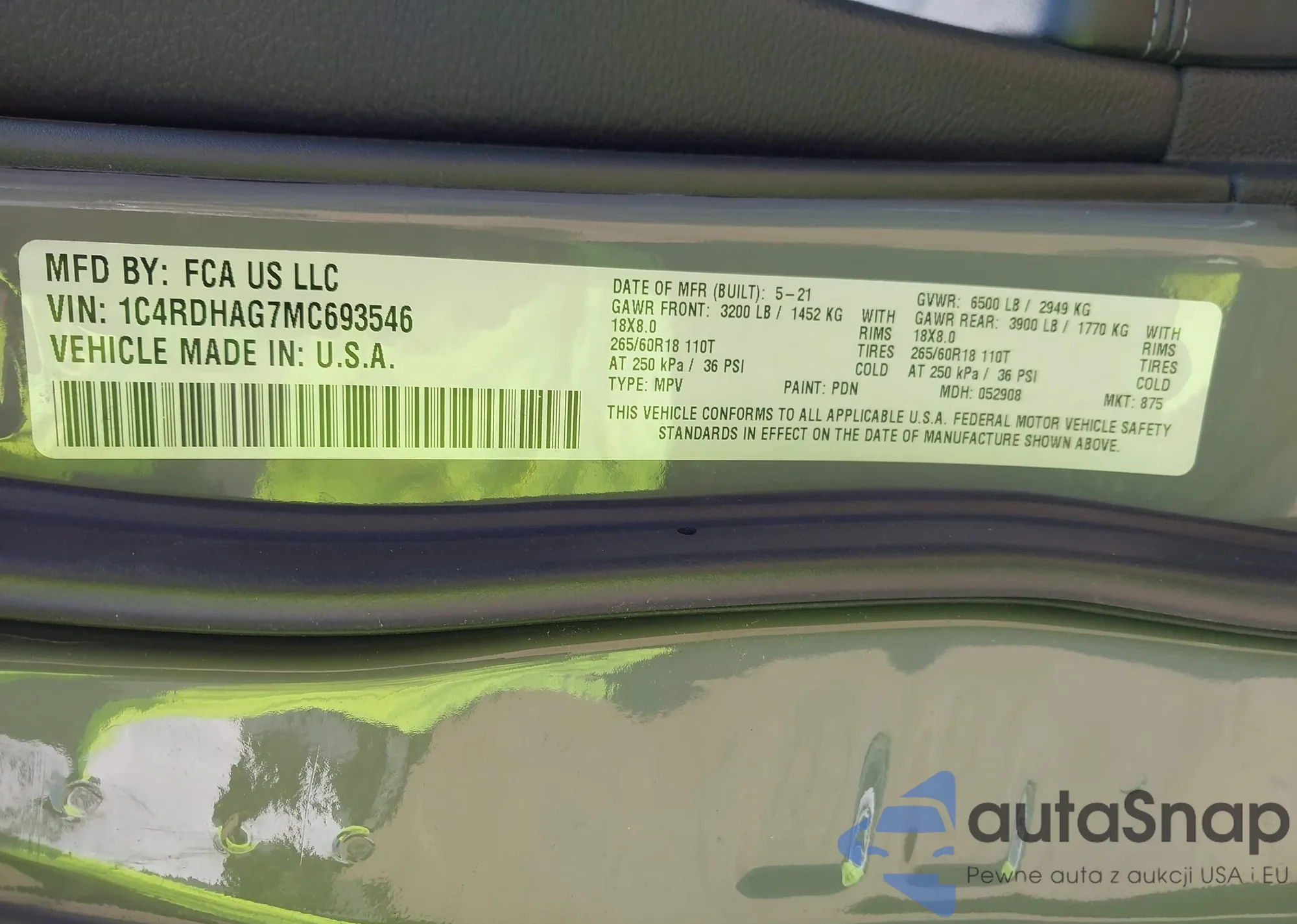 VIN: 1C4RDHAG7MC693546