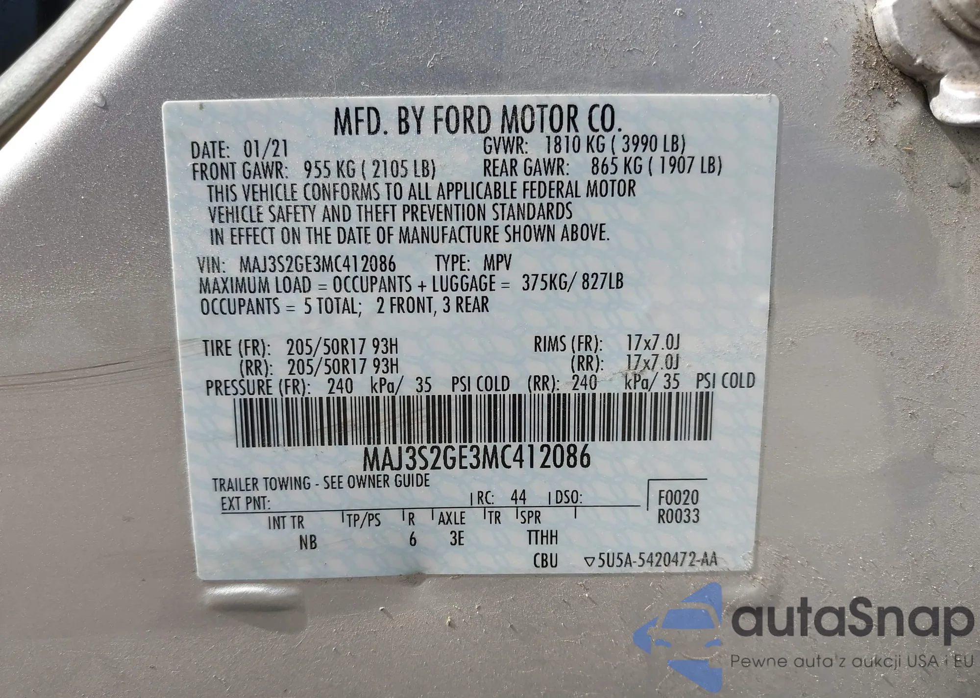 VIN: MAJ3S2GE3MC412086