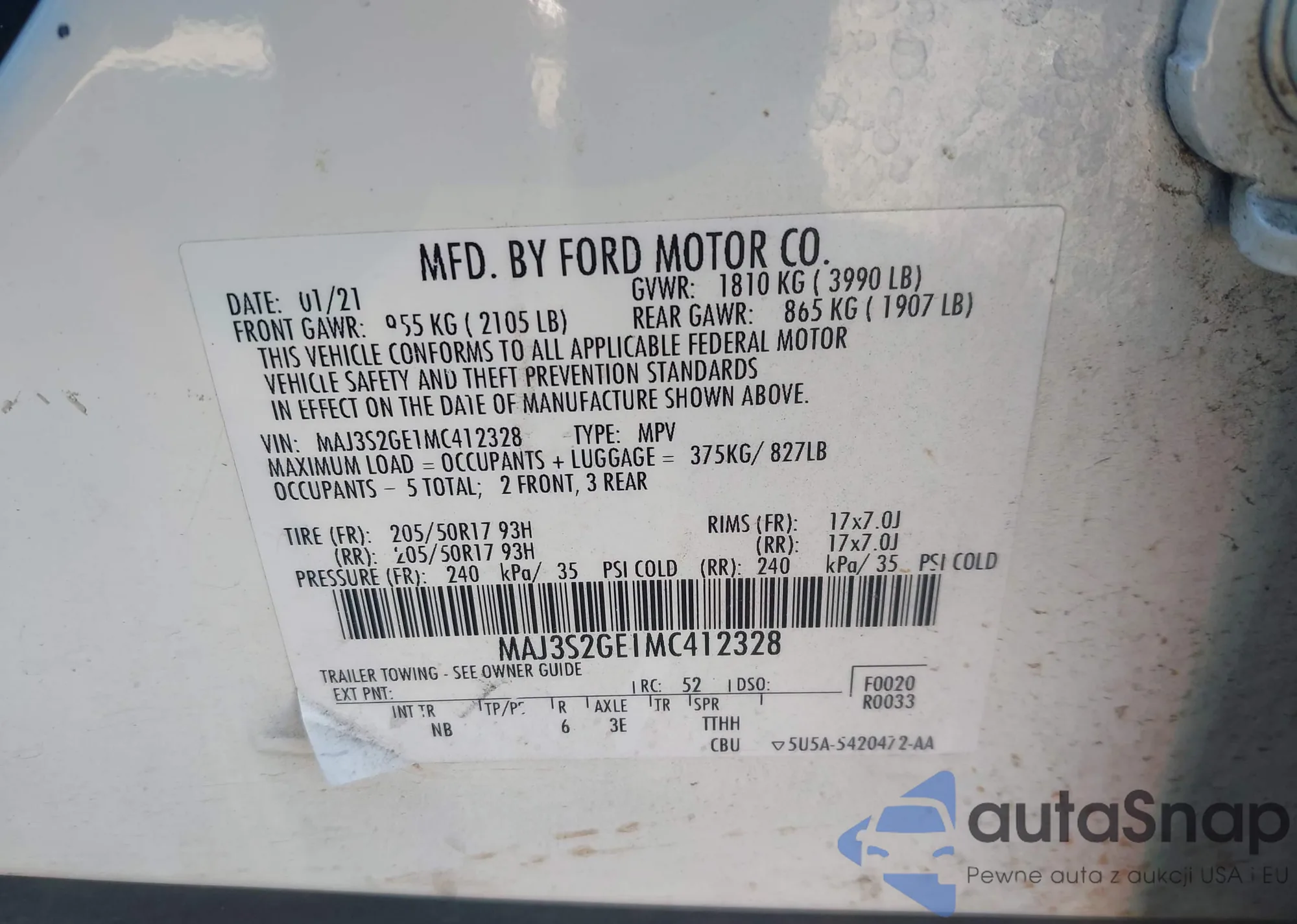 • VIN: MAJ3S2GE1MC412328