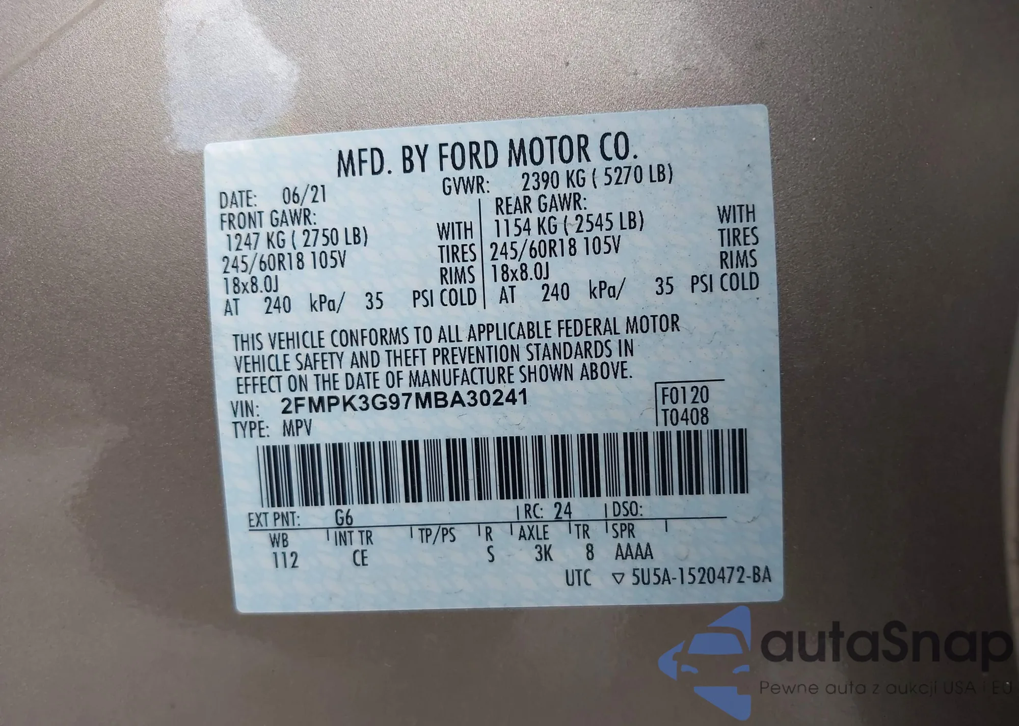 VIN: 2FMPK3G97MBA30241