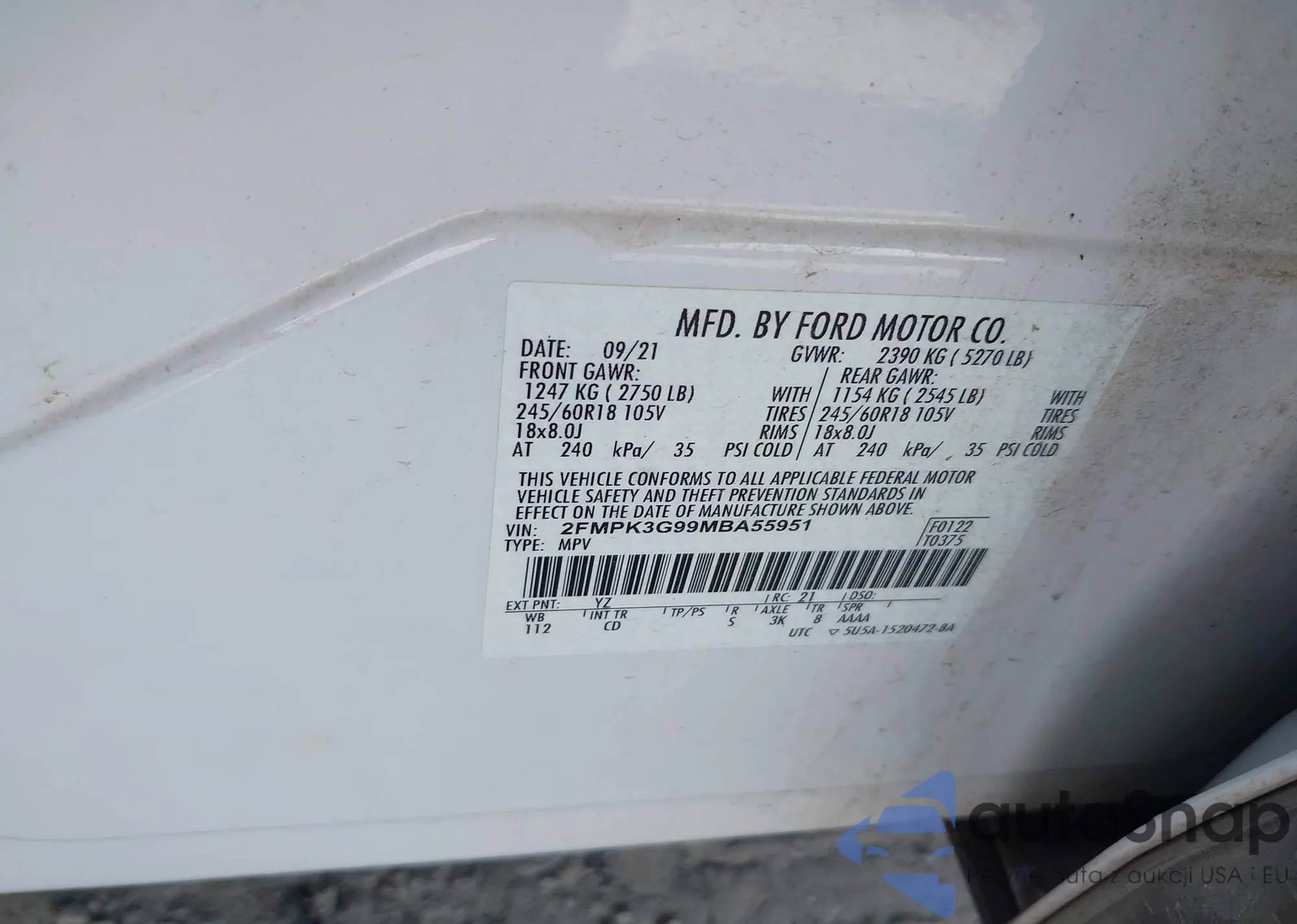 VIN: 2FMPK3G99MBA55951