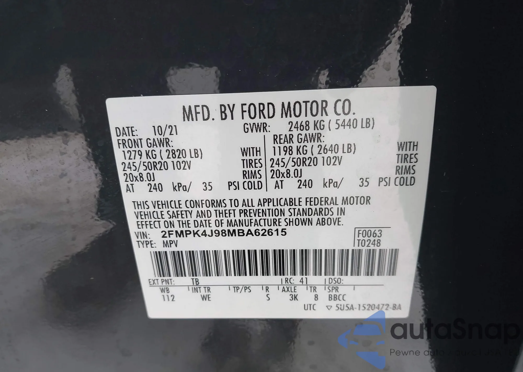 Автомобиль Ford Edge 2021 (VIN 2FMPK4J98MBA62615) ранее не участвовал в торгах. Документы чистые, пробег соответствует или ниже среднего по рынку. Продаётся страховой компанией — рекомендуем покупку. Доставка в порт займет около 6–8 недель.
