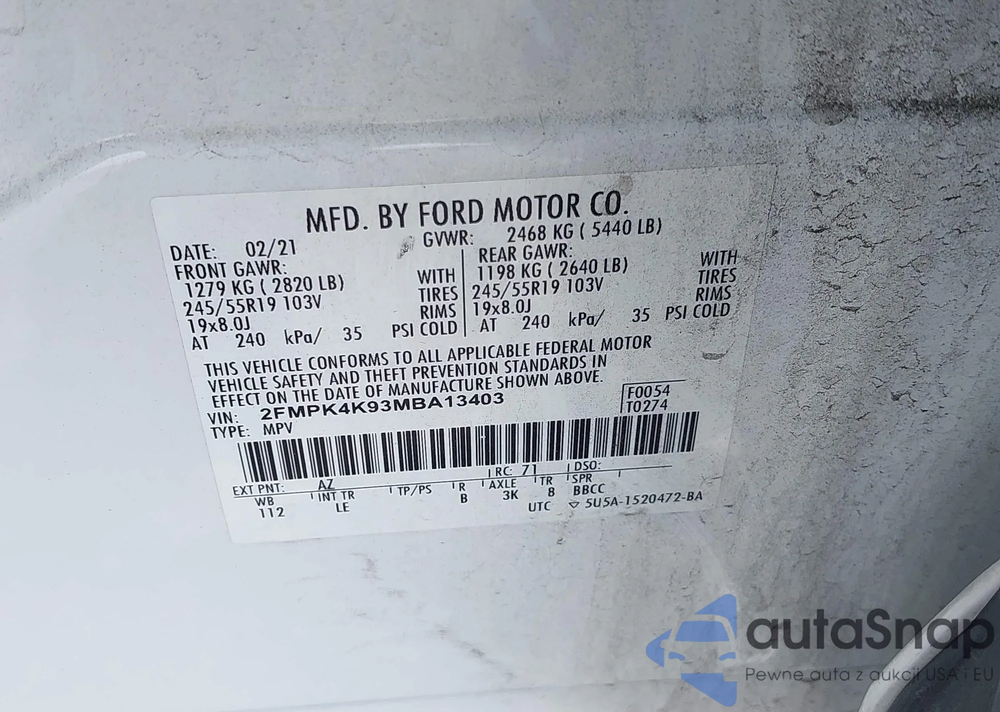VIN: 2FMPK4K93MBA13403