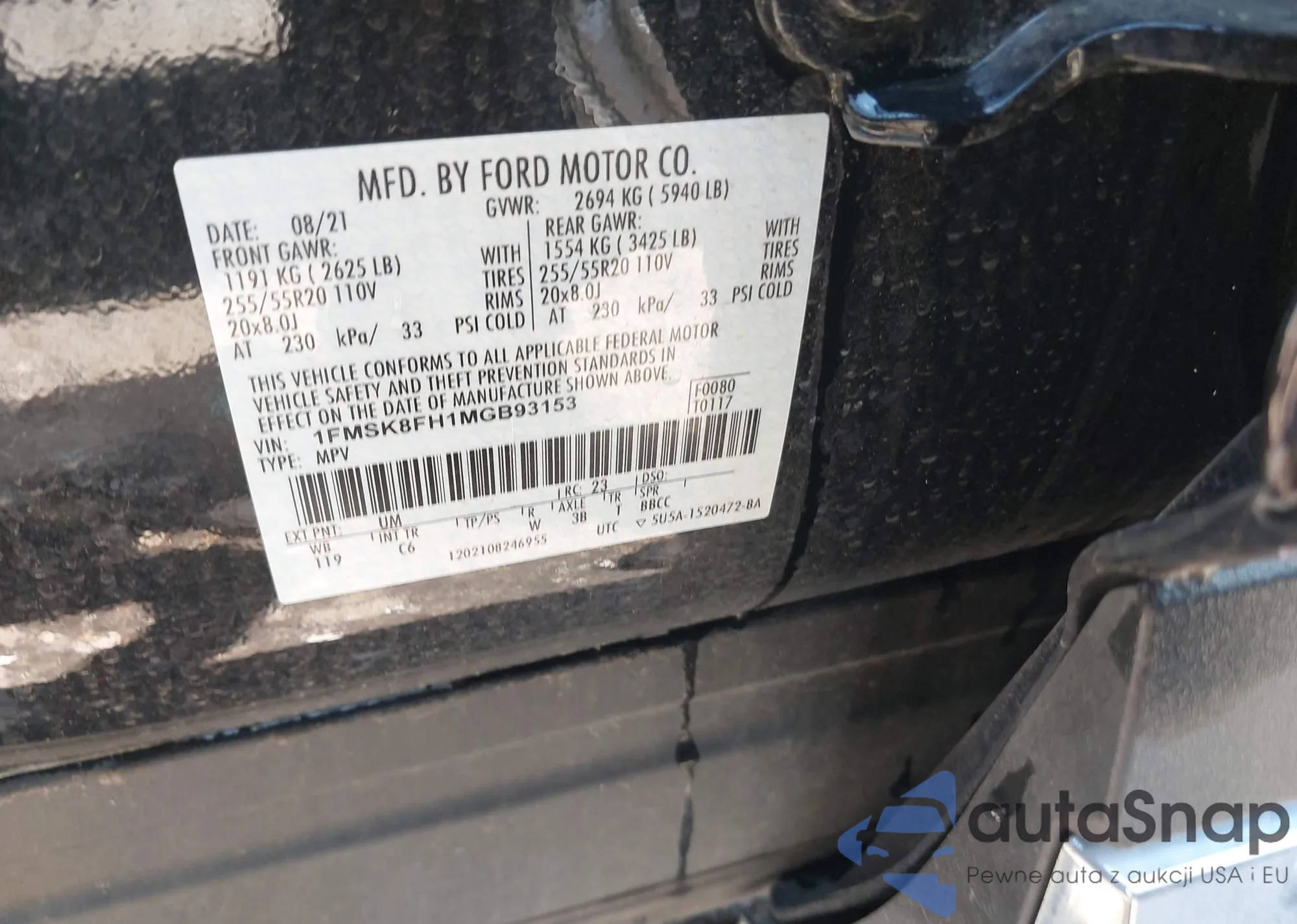 • VIN: 1FMSK8FH1MGB93153