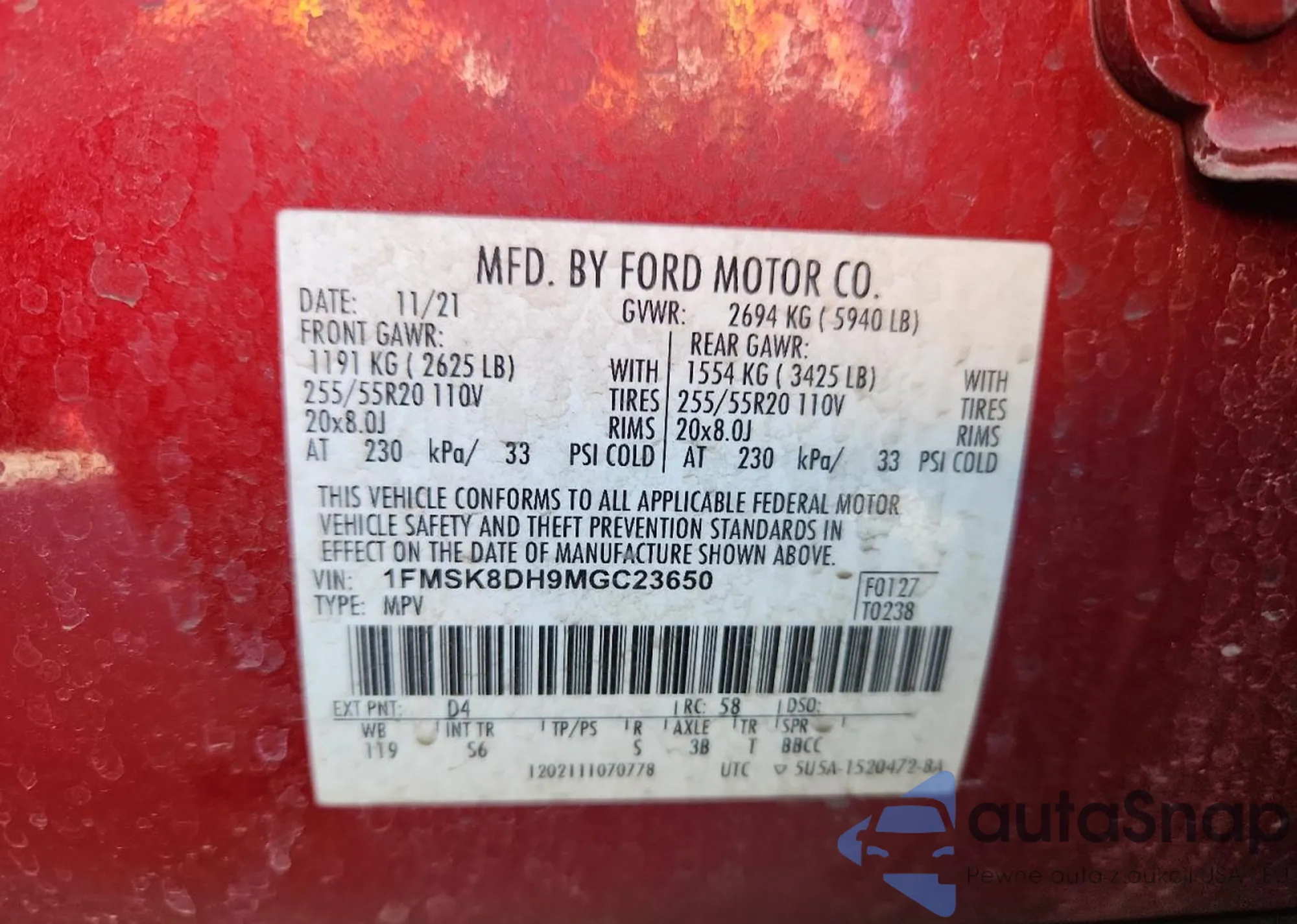 VIN: 1FMSK8DH9MGC23650