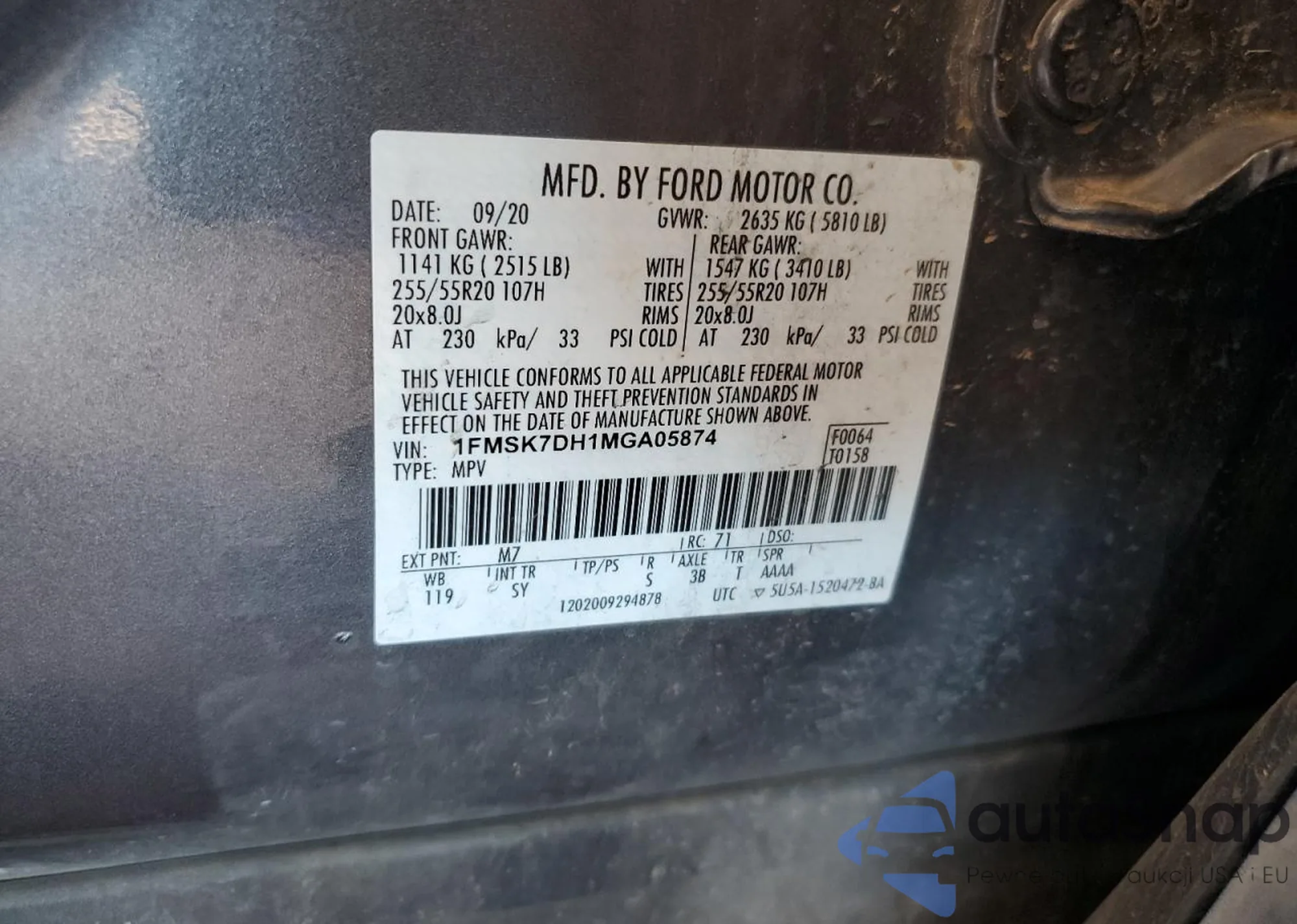 VIN: 1FMSK7DH1MGA05874