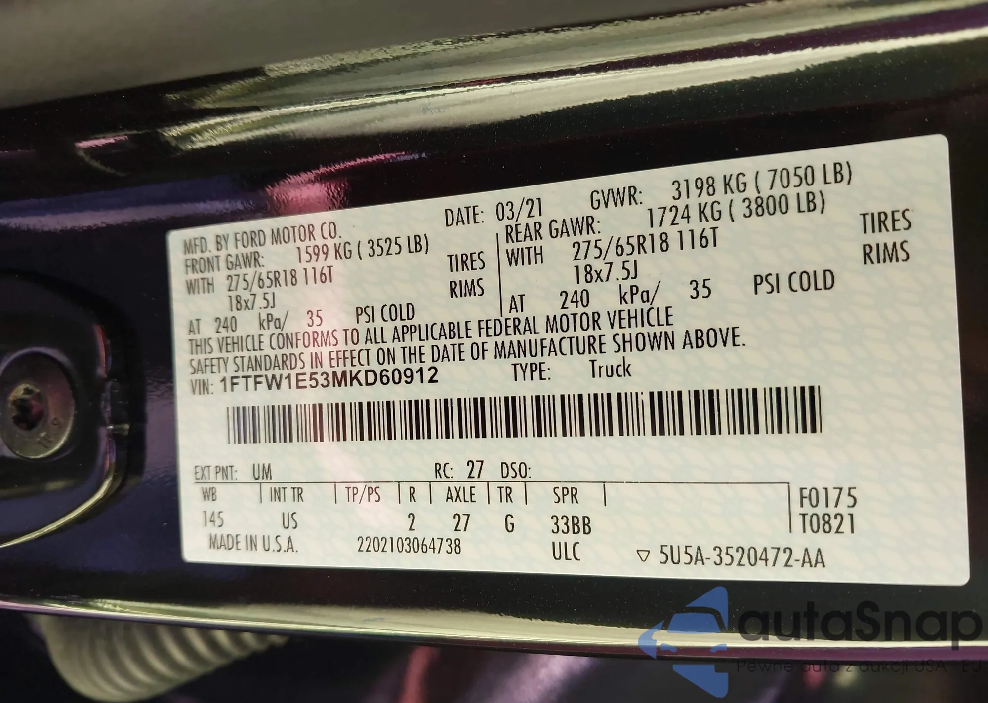 VIN: 1FTFW1E53MKD60912