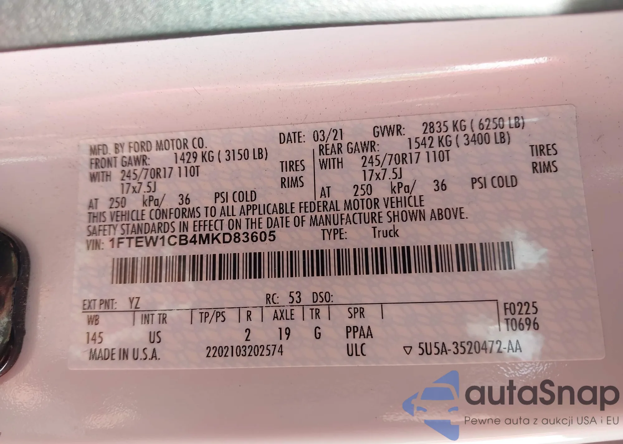 VIN: 1FTEW1CB4MKD83605