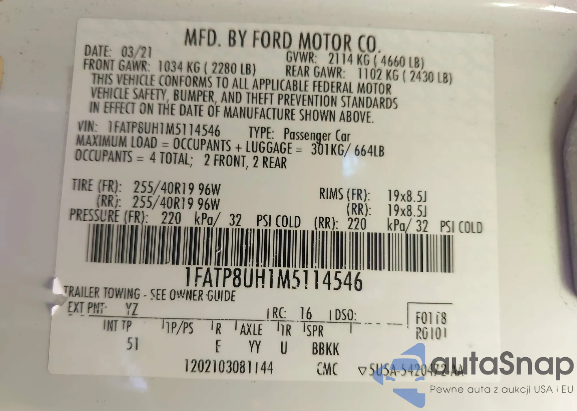 VIN: 1FATP8UH1M5114546