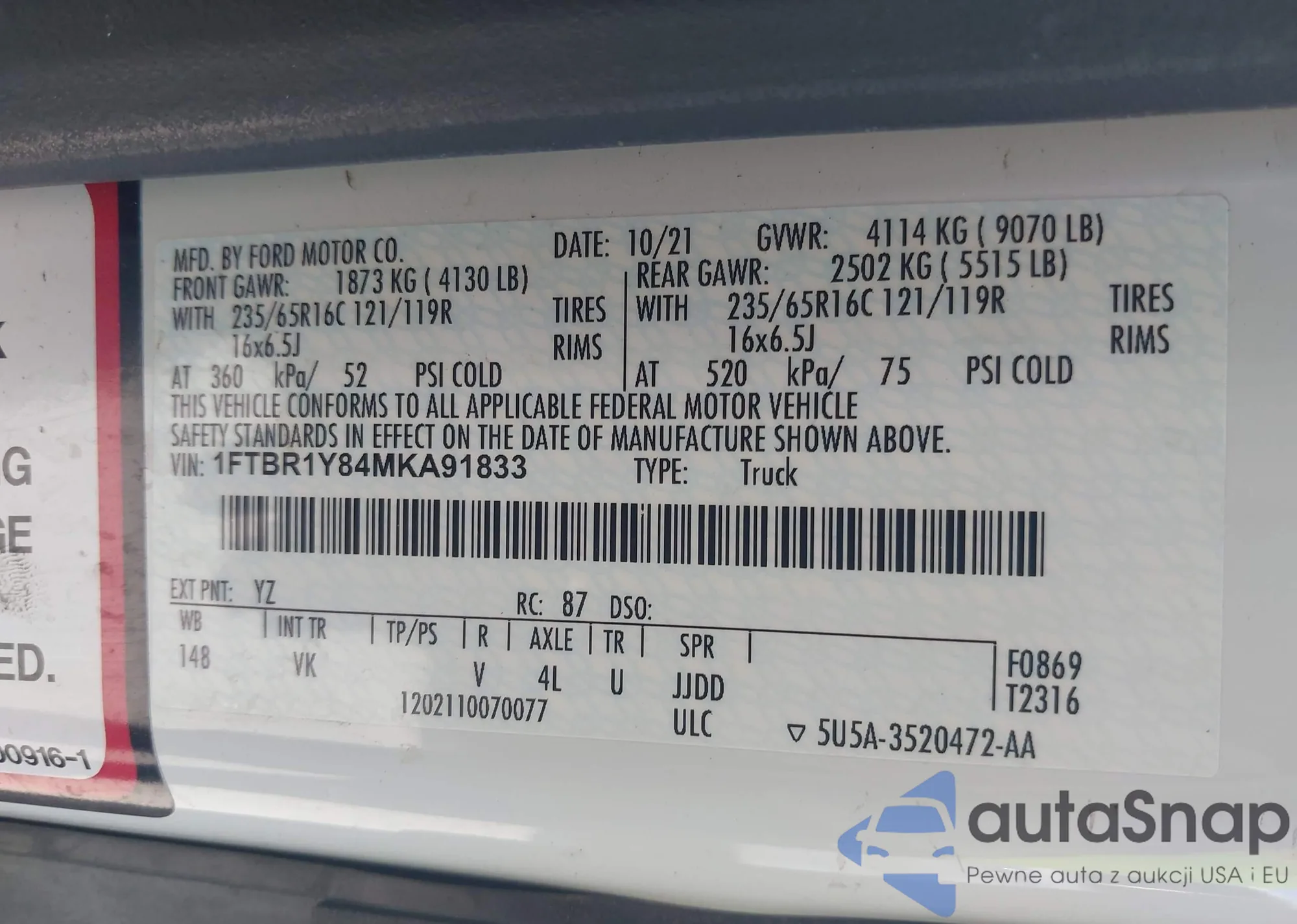 VIN: 1FTBR1Y84MKA91833