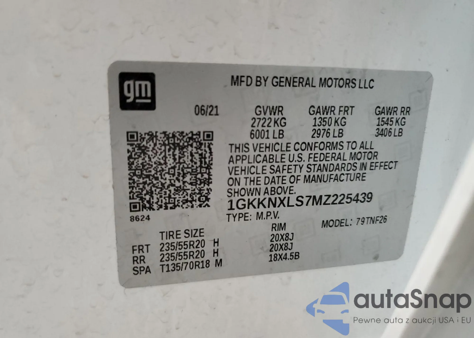 VIN: 1GKKNXLS7MZ225439