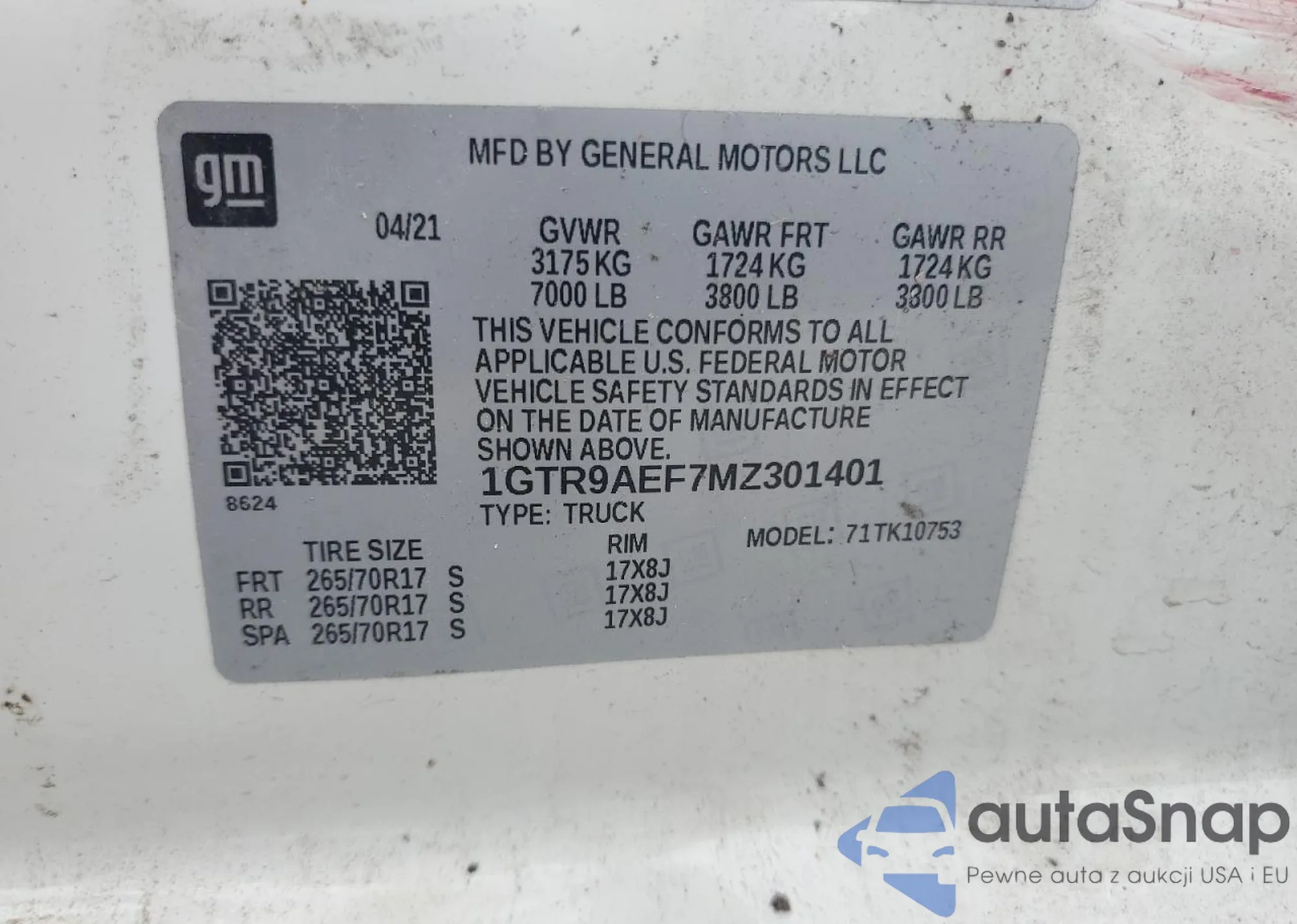 VIN: 1GTR9AEF7MZ301401