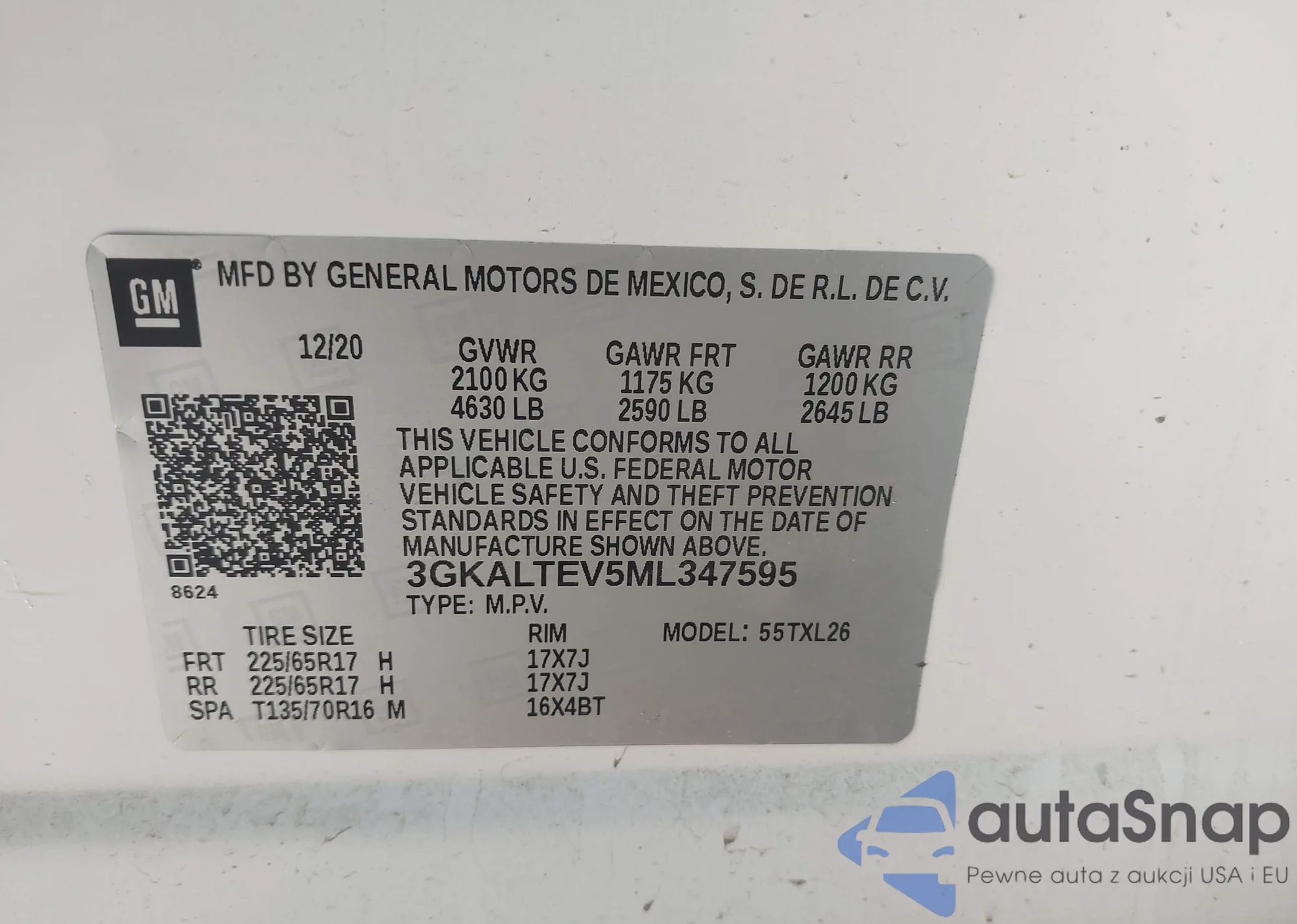 VIN: 3GKALTEV5ML347595