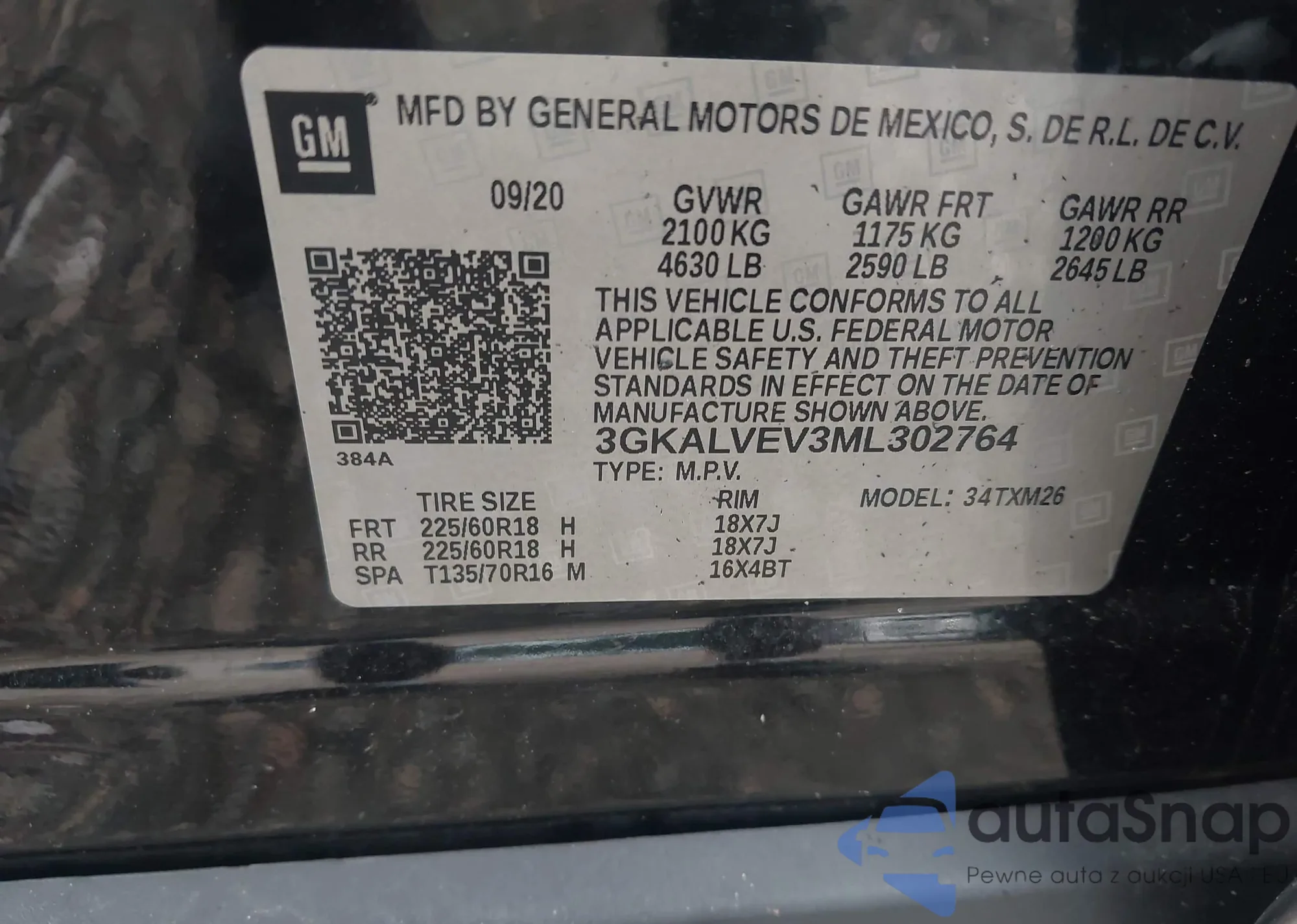 VIN: 3GKALVEV3ML302764
