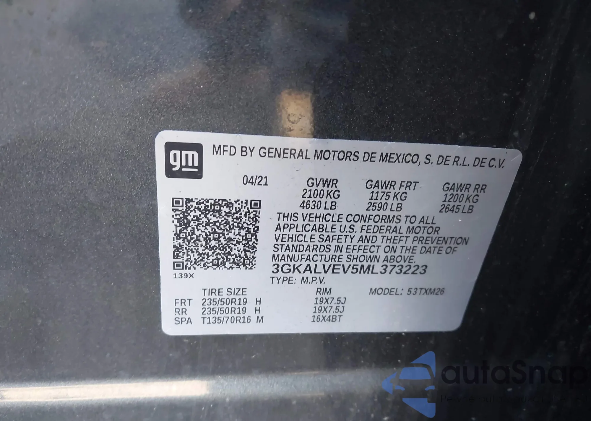 VIN: 3GKALVEV5ML373223