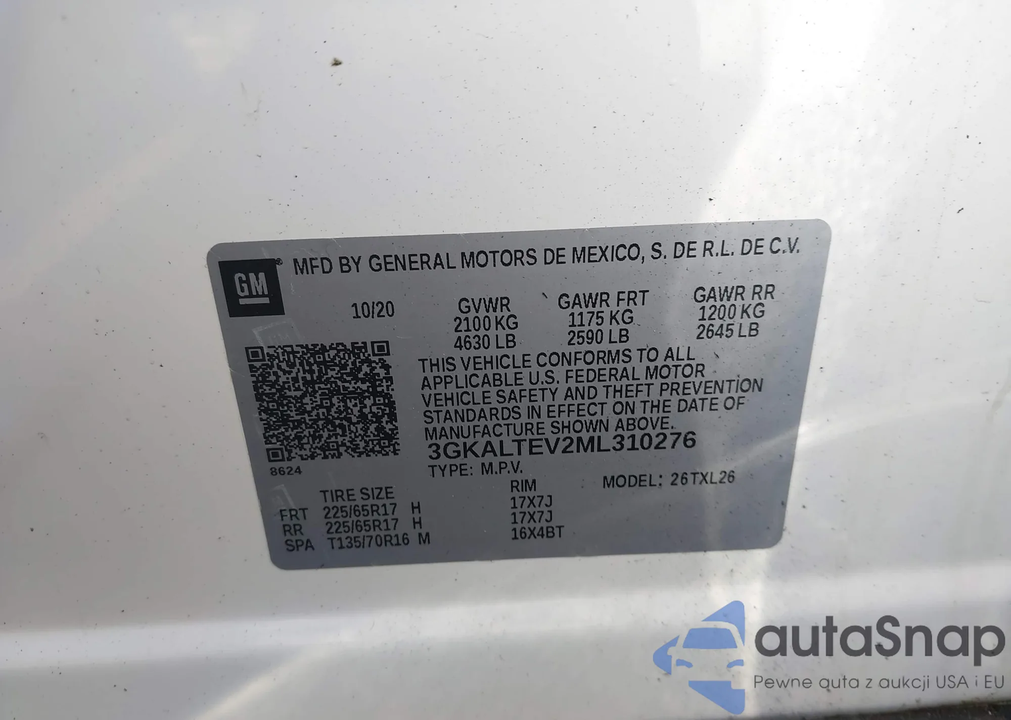 VIN: 3GKALTEV2ML310276
