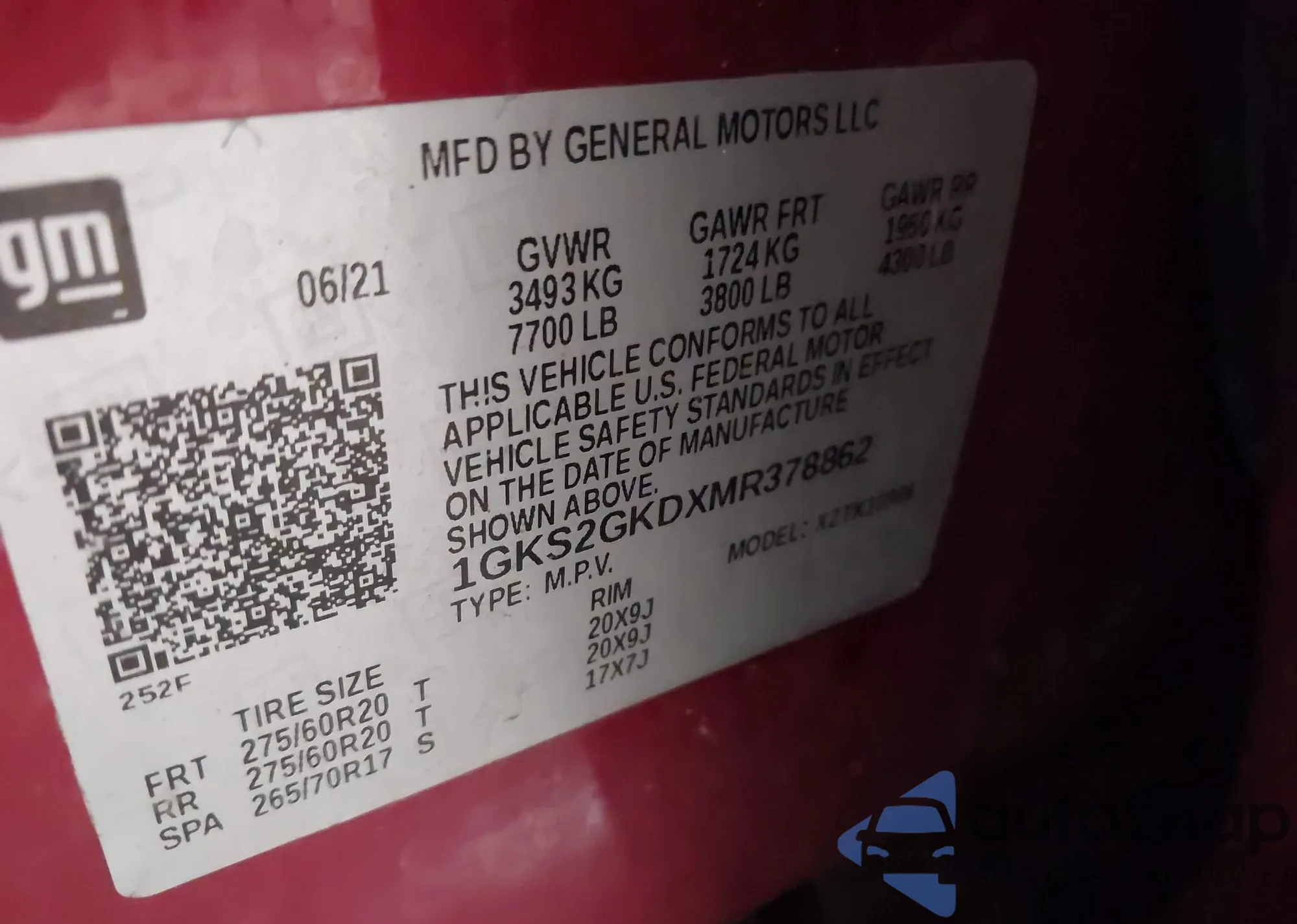 • VIN: 1GKS2GKDXMR378862