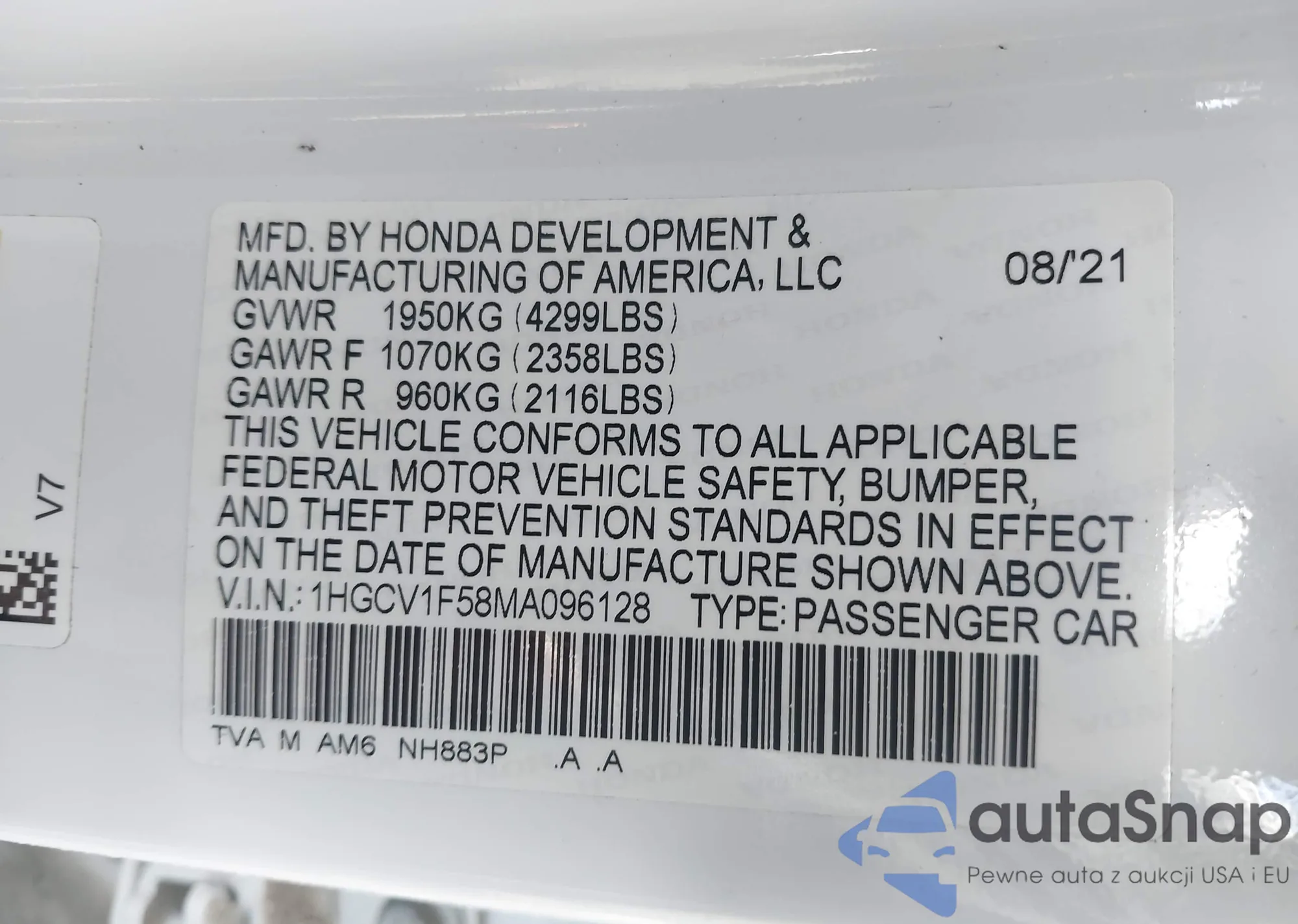 VIN: 1HGCV1F58MA096128