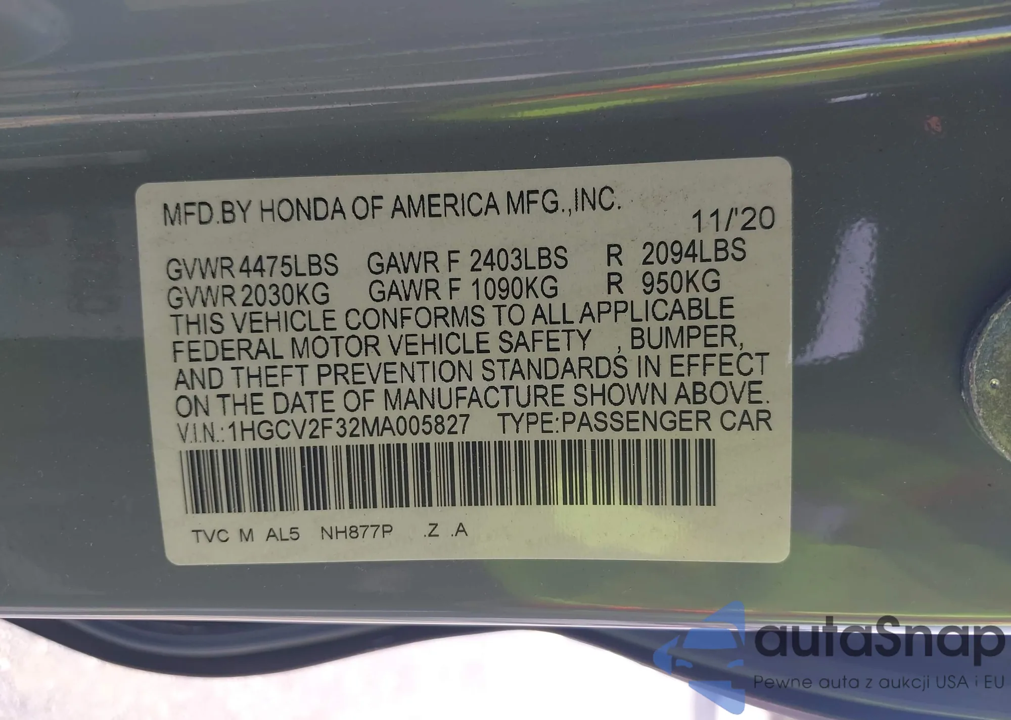 • VIN: 1HGCV2F32MA005827