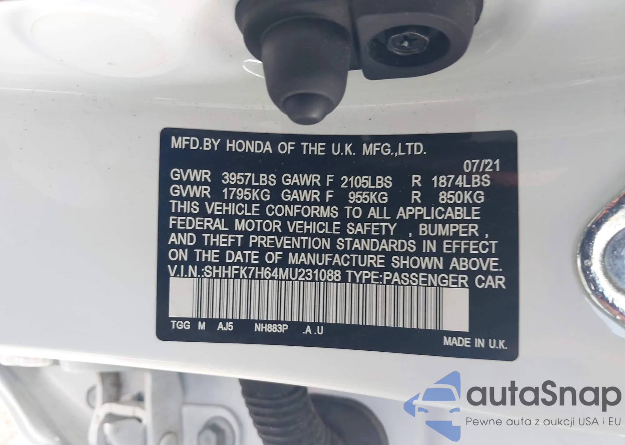 VIN: SHHFK7H64MU231088