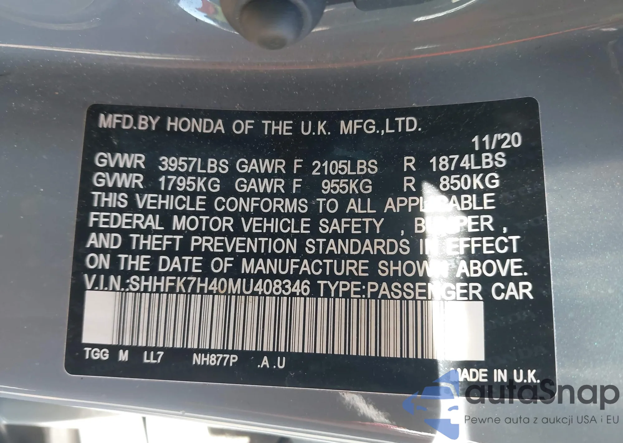 VIN: SHHFK7H40MU408346